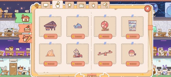 买办公桌需要花钱,买完了开动物盲盒也要花钱,重点是,不同等级的盲盒想开它钱也不一样,我经常是有钱买桌子,有钱点盲盒,但是不够钱开盲盒,就卡在这里了,只能硬挂着等钱够数。哎……