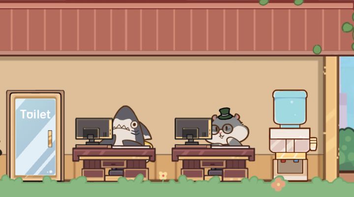 但是你们知道要怎么开小动物盲盒嘛?首先你得买张办公桌,然后点击桌子才能开动物盲盒。动物落地即开工,中途动物员工要是离开工位在周围晃悠,甚至还可以点击小动物让它回去干活!老板黑心程度堪比园区。