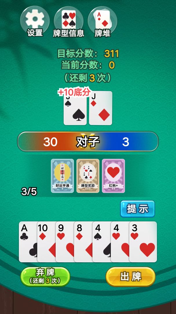 游戏的目标很简单,就是通过组建牌组,升级牌型来获得更高的分数。