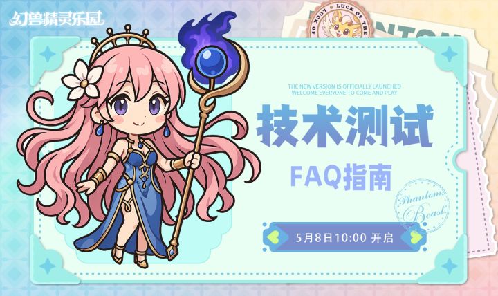 亲爱的幻兽师们:《幻兽精灵乐园》即将于2025年5月8日10:00开启技术测试,期待各位幻兽师们在迷宫中尽情探索!更多测试相关信息可查看以下测试FAQ👇预祝幻兽师们在游戏中玩的开心~Q:测试什么时候开始?A:测试将于2025年5月8日10:00开始,5月22日18:00关闭服务器结束本轮测试。Q:有没有测试福利A:为感谢各位的支持,我们将在测试期间不定期开启福利活动,欢迎各位冒险者踊