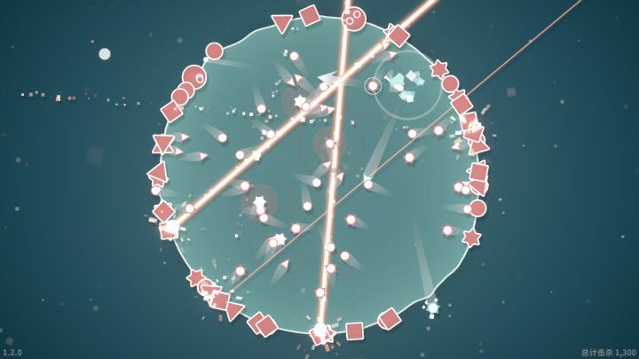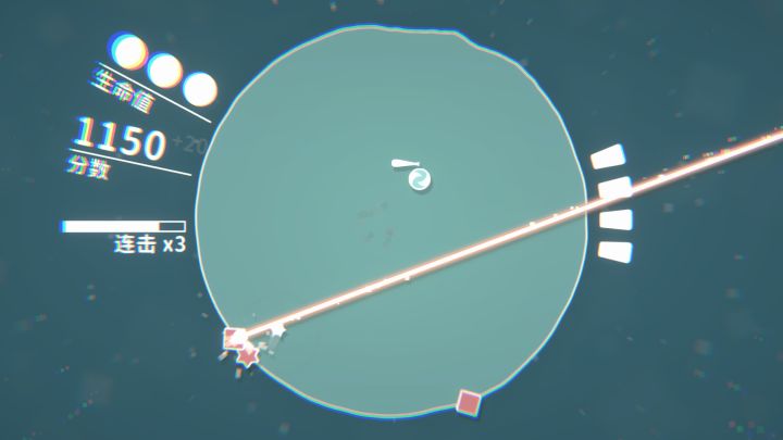 此外,游戏中还会不时出现一些奖励内容,如格挡伤害的护盾、自动反弹弹幕的区域、向四周散射开来的球体等。