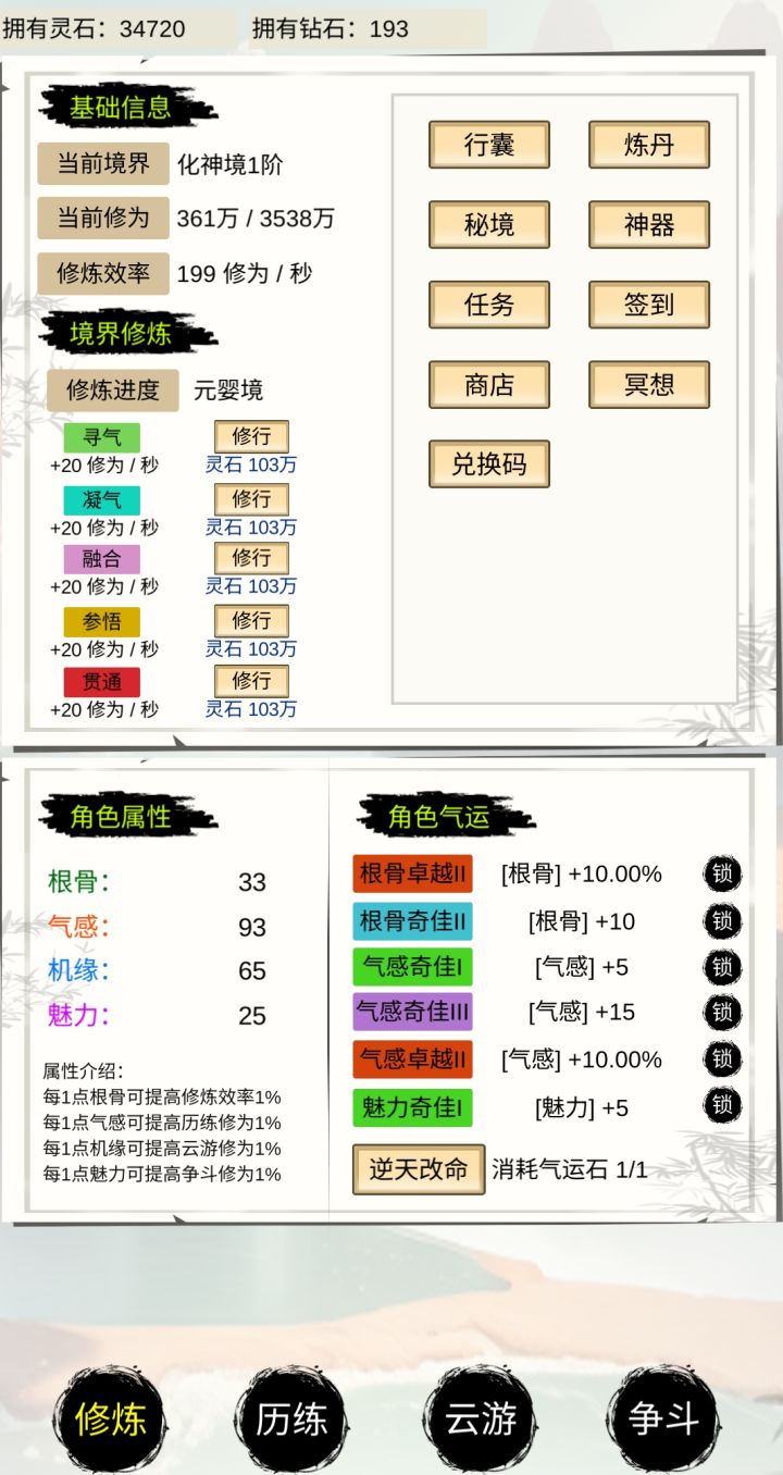 刚到化神,开局刷的全加属性的气运,也不知道对不对。钻石全买钥匙抽神器了。