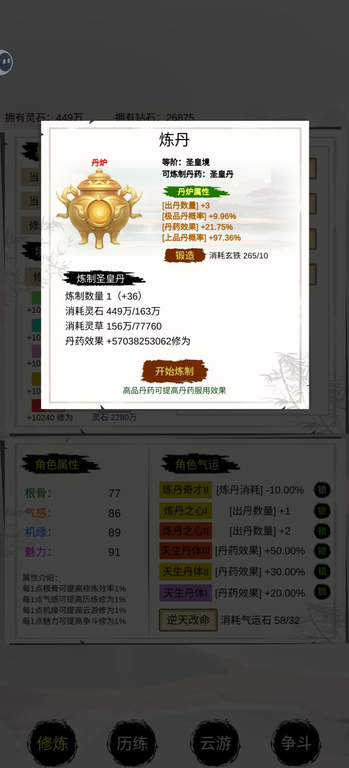极品丹总几率差不多200%啦,还是要差不多3次才出一次