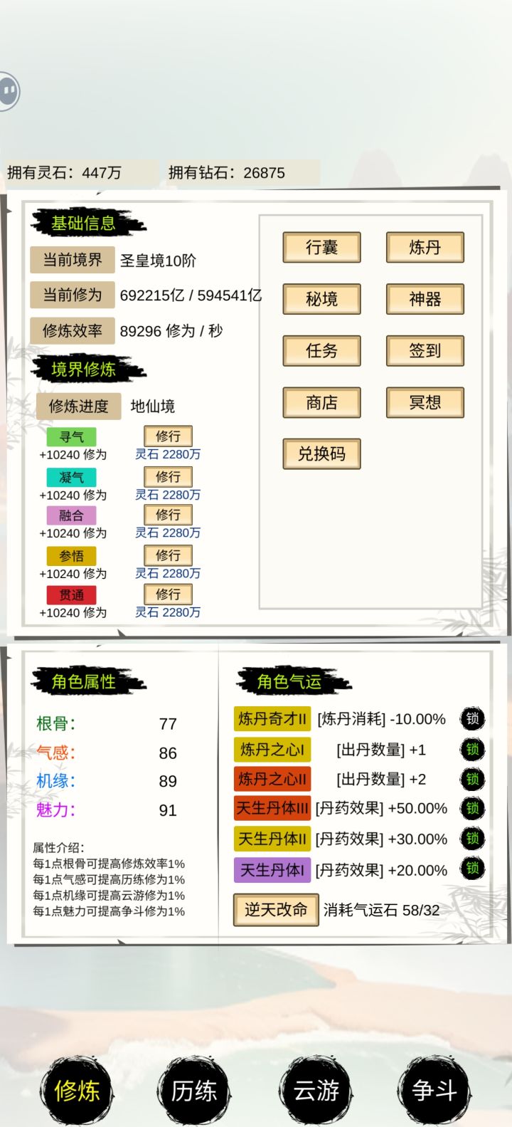 真靠挂机想到头没个三五年是不可能的。只有炼丹,一炉极品圣皇丹8万多亿修为。。。。问题是到头了再没任何提升了。。。