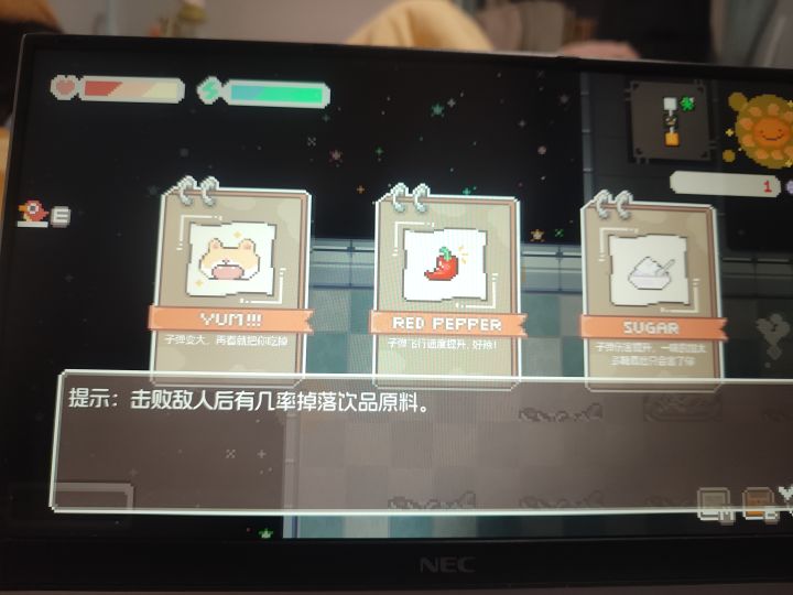 糟糕的UI设计考验了玩家的视力,左上角的血条模糊不清,弹幕的碰撞体积也基本靠猜,小怪不显示的血条让你根本不知道他还能再受几枪,只能说玩法较为原始,进步空间较大。