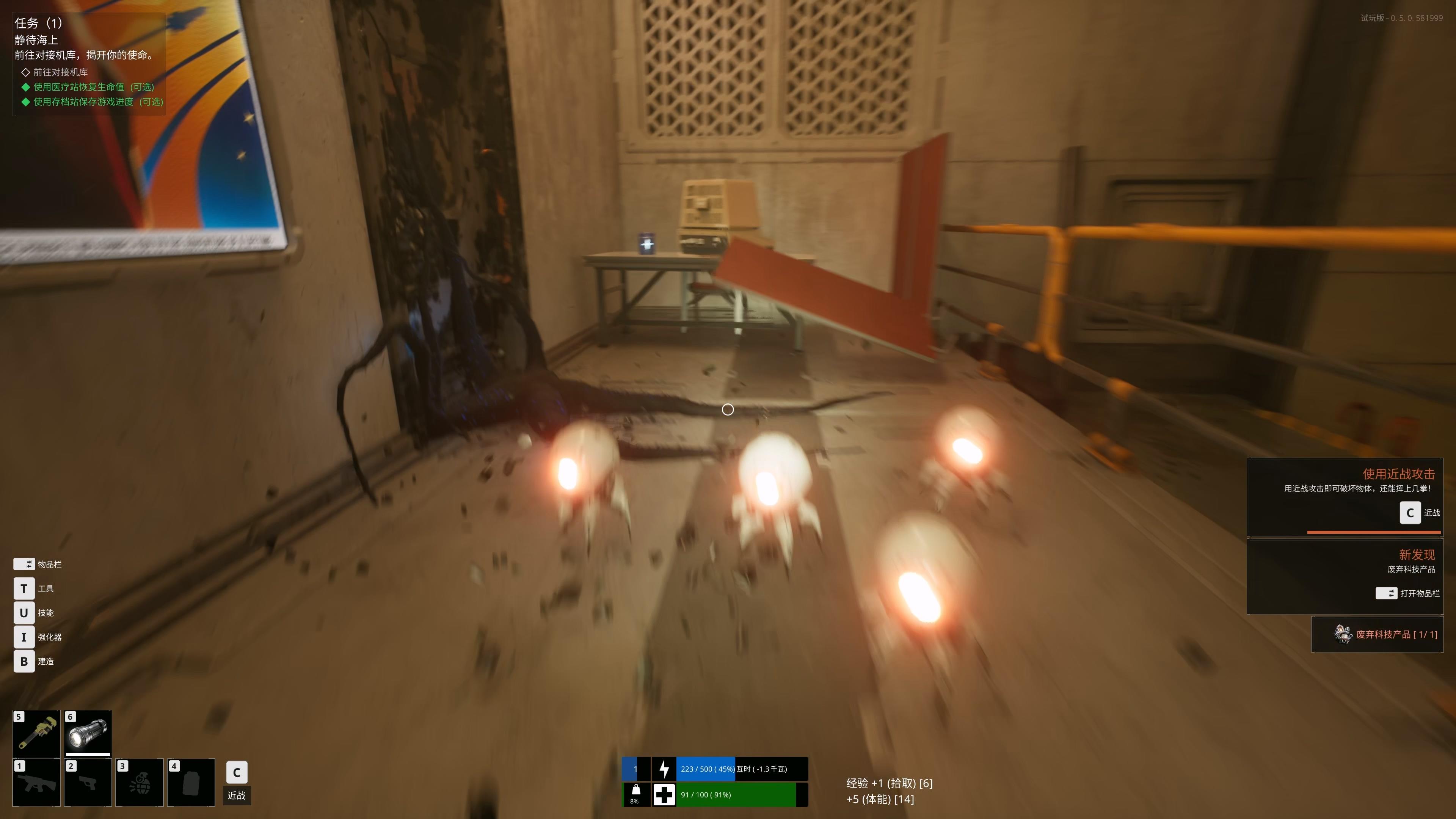 本作的游戏和机器人有着非常强的交互玩法,机器人有着类似磁吸的方式,可以将任何看见的物品拿起来,有时候需要使用这些方式清理道路,和抓取电缆、燃料管道等等去接阀门。如果所在的地方没有电,电控门没法用,还需要玩家操作机器人在吸住大门后,配合鼠标方向用来开门,也就是说除了交互还需要动作的配合。醒来的地方是一个废弃的研究所,而且是被这个研究所的系统所唤醒,所以醒来的第一件事就是就是恢复电力,但在研究所的关键地点,却有一些类似八爪鱼一样的多个触手的怪物,如果靠近就会爆出会攻击玩家的小机器人,这个时候只能掏出随身的撬棍给这些时空的机器人来几下,物理上的让他们安静点。