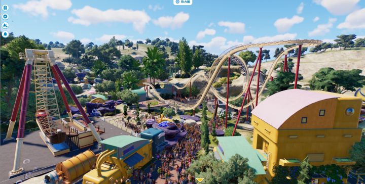 在游戏的各种娱乐设施中,我最喜欢的就是过山车了(现实中没有坐过),而且本作增加了游玩的第一视角,让我这个在现实中不敢坐过山车的人,也体验了那是什么感觉。在奔涛戏浪中—史上最强过山车公园模拟器再度发力:发挥你无限的想象力,去突破思维的局限吧,用你的铁腕去管理好乐园吧,去建造你心中最好的主题公园,用震撼人心的设施将欢笑带给游客,去成为最强创意者!