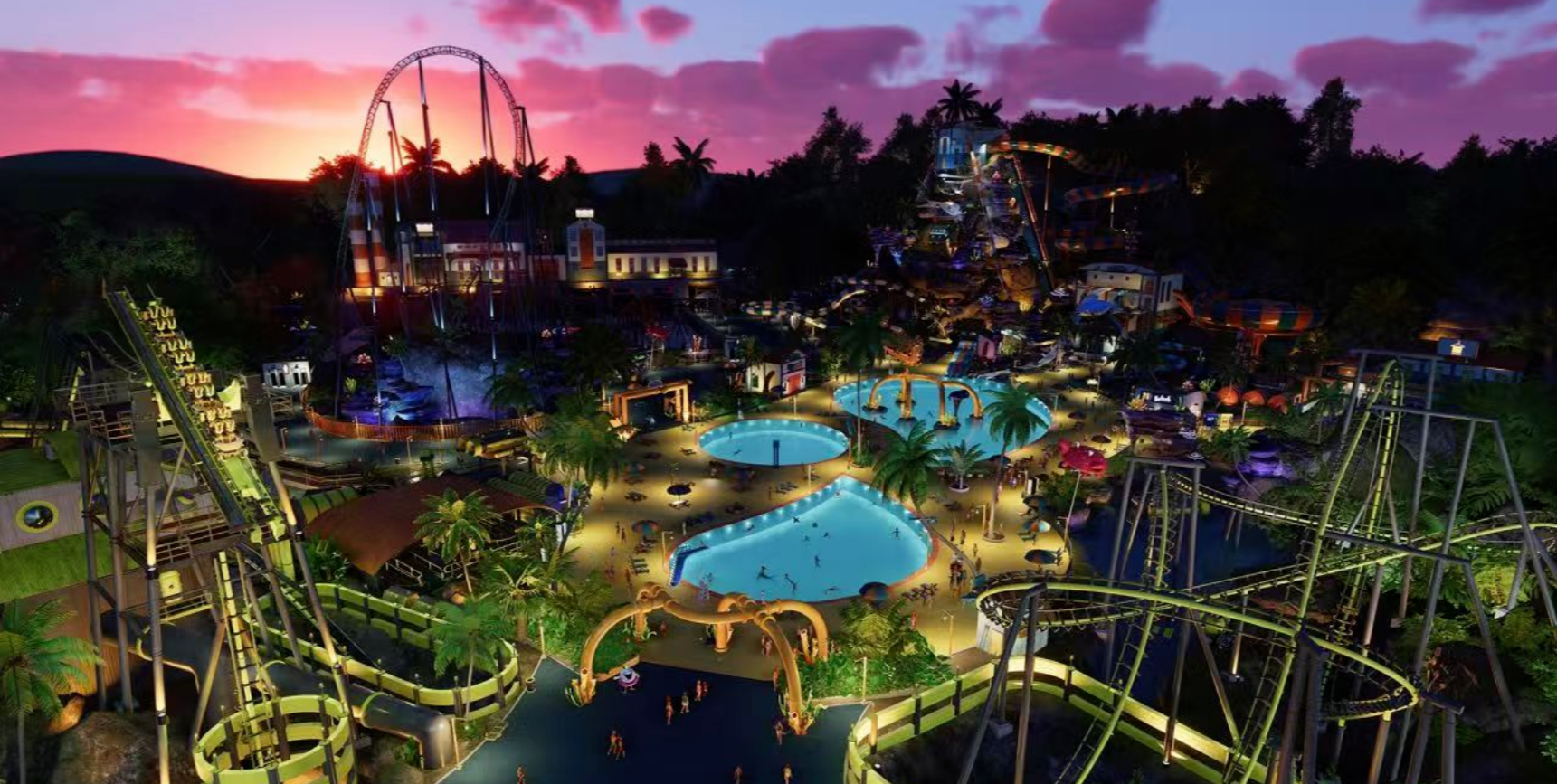 此外还有泳池设施、其它设施、员工设施、风景建筑物和大型滑道、漂流等轨道设施以及大摆锤、跳楼机、旋转木马等无轨道游乐设施。