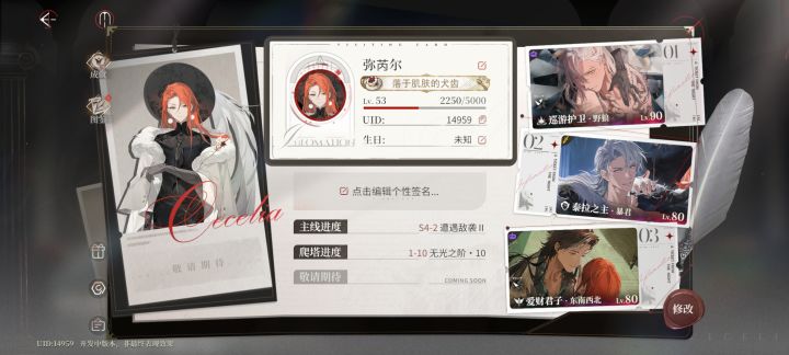 以上是战斗的极限,数据如图,甚至已经是手动操作的结果,命盘和技能红卡全部升到了5,黄卡差不多也有3先说先说福利,完全不够。真是搞不懂困难主线过完才有的五抽为什么这么难拿?我第1次见要拿完主线奖励还得过完困难模式的游戏,甚至只有五抽,还不能拿完新手池。新手池还要300才能自选,我玩的大部分二游只要充月卡,一天一抽是有的,还不算常驻资源和活动,保底也140。只凭画风凭什么选择你们家?如此抠门的游戏,