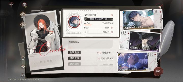 三测的最后一天抠搜的官方终于大方了一把,用常驻的300抽奖励换来了最后一个红手套,也算圆满。强度方面,主线困难全通,爬塔到顶,只有最后的资源关因为机制和红手套来的太晚卡住了,但无伤大雅(甚至因为体力不够会特意打前面的资源关,毕竟后面的培养材料也暂时用不到所以公测的大家也别不用急着打通)建议是有六星养六星,别迷信强度榜,比如虽然奶量叻沙>嘀嗒,但一些必须躲技能的机制关卡嘀嗒的作用无可替代。抽卡氪