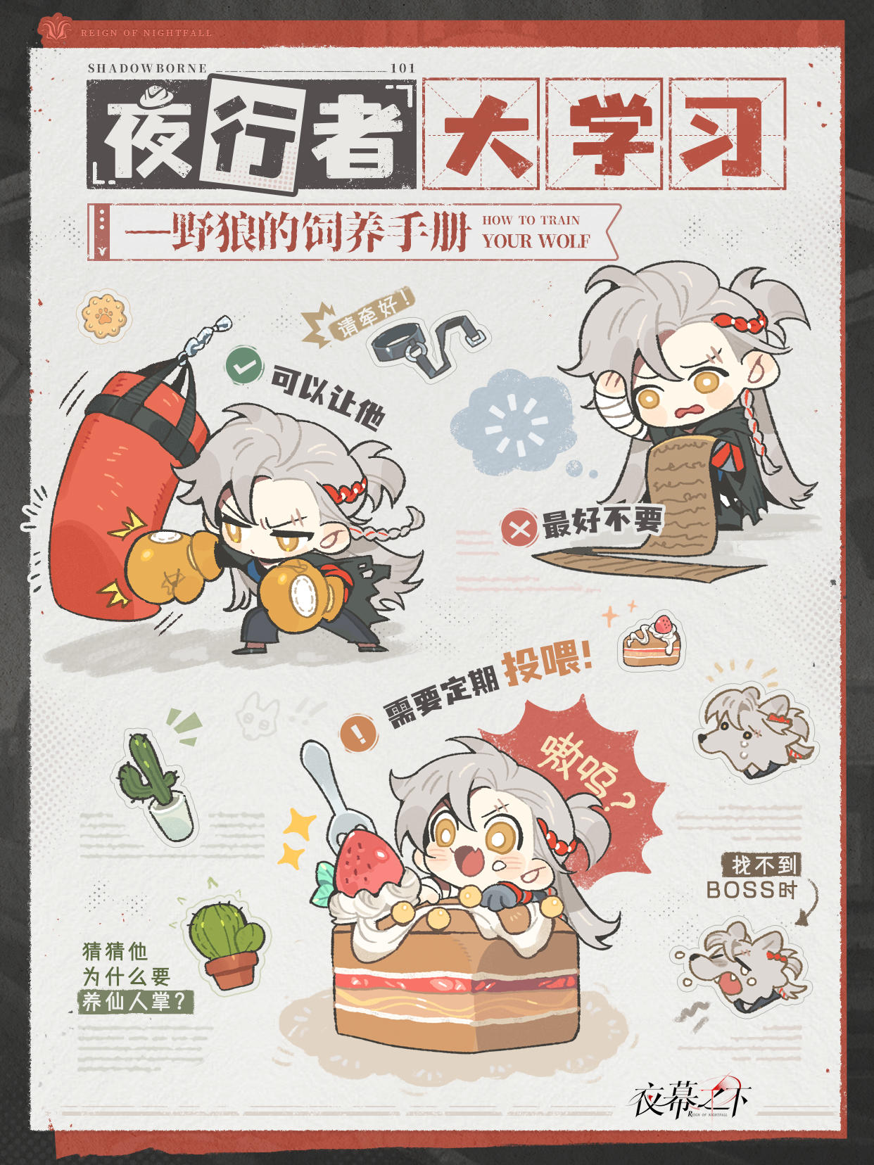 走近夜行者,知识轻松学!夜行报社推出首期学习资料《夜行者大学习(第一期)》现已编纂审订完毕!本期主题:野狼的饲养手册基于一线观察,收录了夜行者「野狼」的日常投喂、情绪安抚及其它小tips,一册学习,教你科学饲养野狼从入门到精通>>> 点击图片,开始大学习——————————🔮游戏预约:#代号砰砰 #夜幕之下游戏 #女性向游戏 #餐巾纸读物 #夜行者大学习 #代号砰砰野