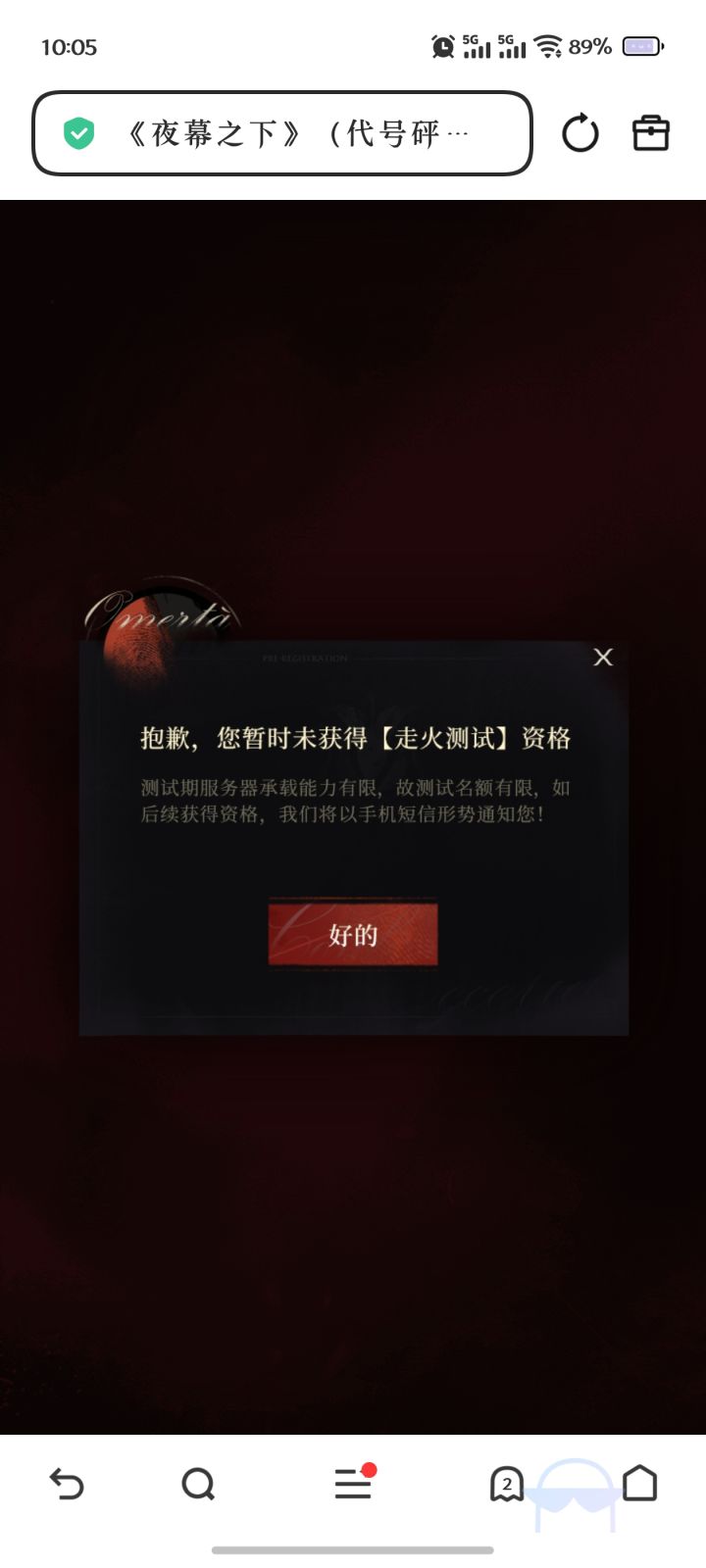 为什么收到了短信却说我没有拿到测试资格