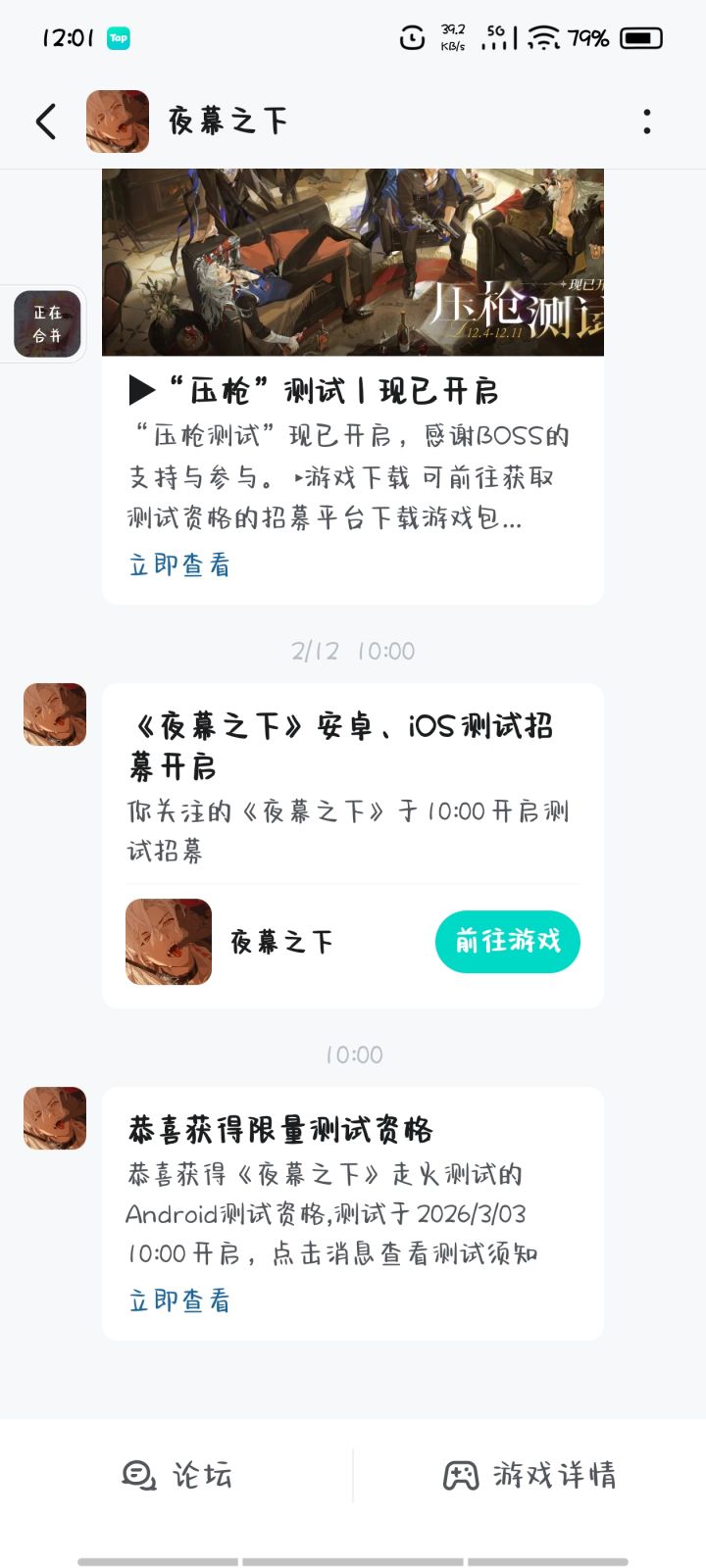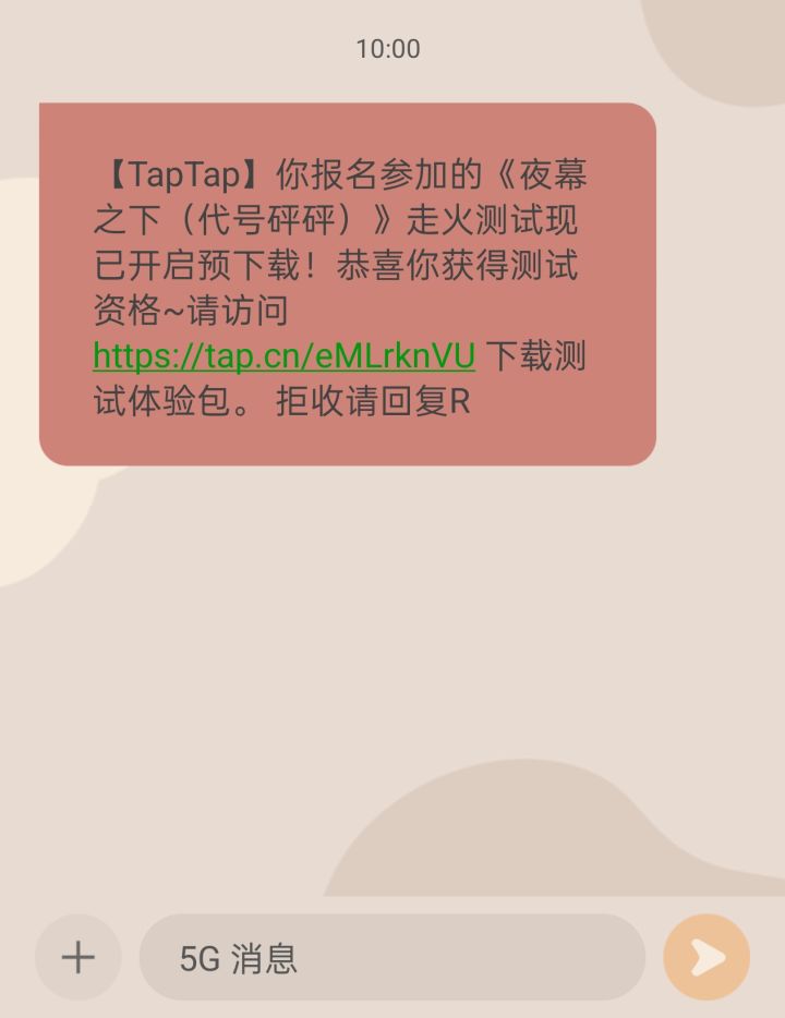 亲爱的BOSS,《夜幕之下》「走火测试」预下载现已开启,本次测试将于2026年3月3日 10:00正式开启!测试资格现已同步开始发放。BOSS可前往官网,点击【测试资格查询】进行查询,测试资格也将通过短信与站内信形式进行发放通知,BOSS可留意查看。需注意:获得PC端测试资格的BOSS需下载并安装【TapTap PC端启动器】后,再进行游戏启动器安装。▸预下载详细指引可查看「走火测试」测试F