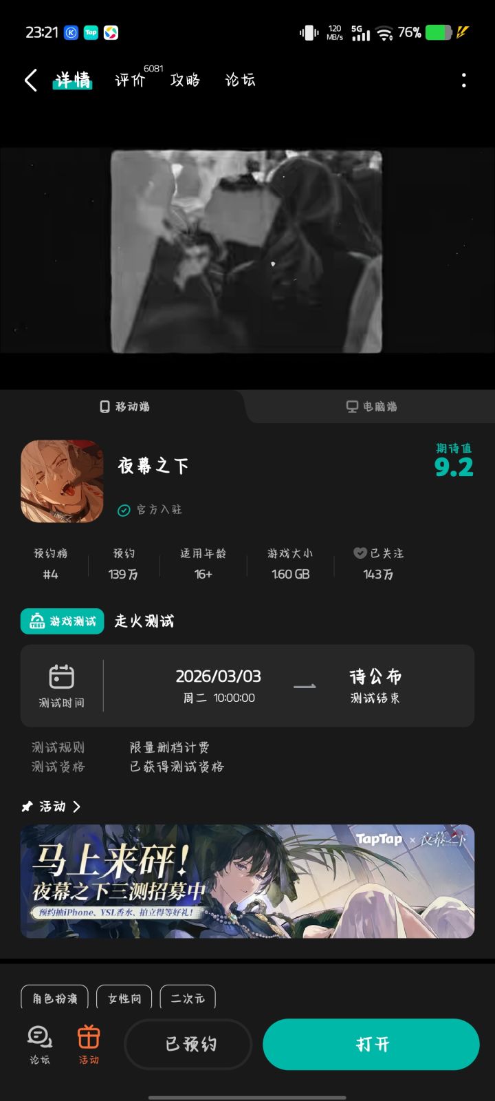 我真的要闹了,我这到底算有资格还是没资格,我要没资格,你为什么给我显示已获得资格啊,然后我下载告诉我。信号测试,不是,那我到底有没有资格呀?本来兴兴奋奋的打开看有资格,然后就要玩儿,然后你告诉我,嗯,我玩不了,整个人大倒地