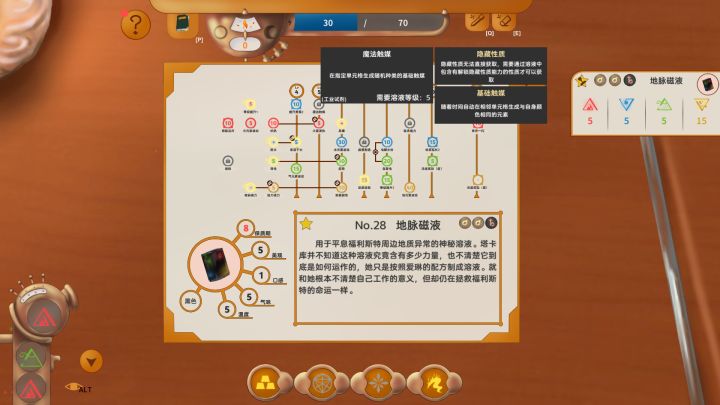 3.炼金。做出来的东西,要满足增幅效果的需求。如果是一瓶非常高级的溶液,会要求很多的指定元素,怎么尽可能地凑出这些元素很重要。