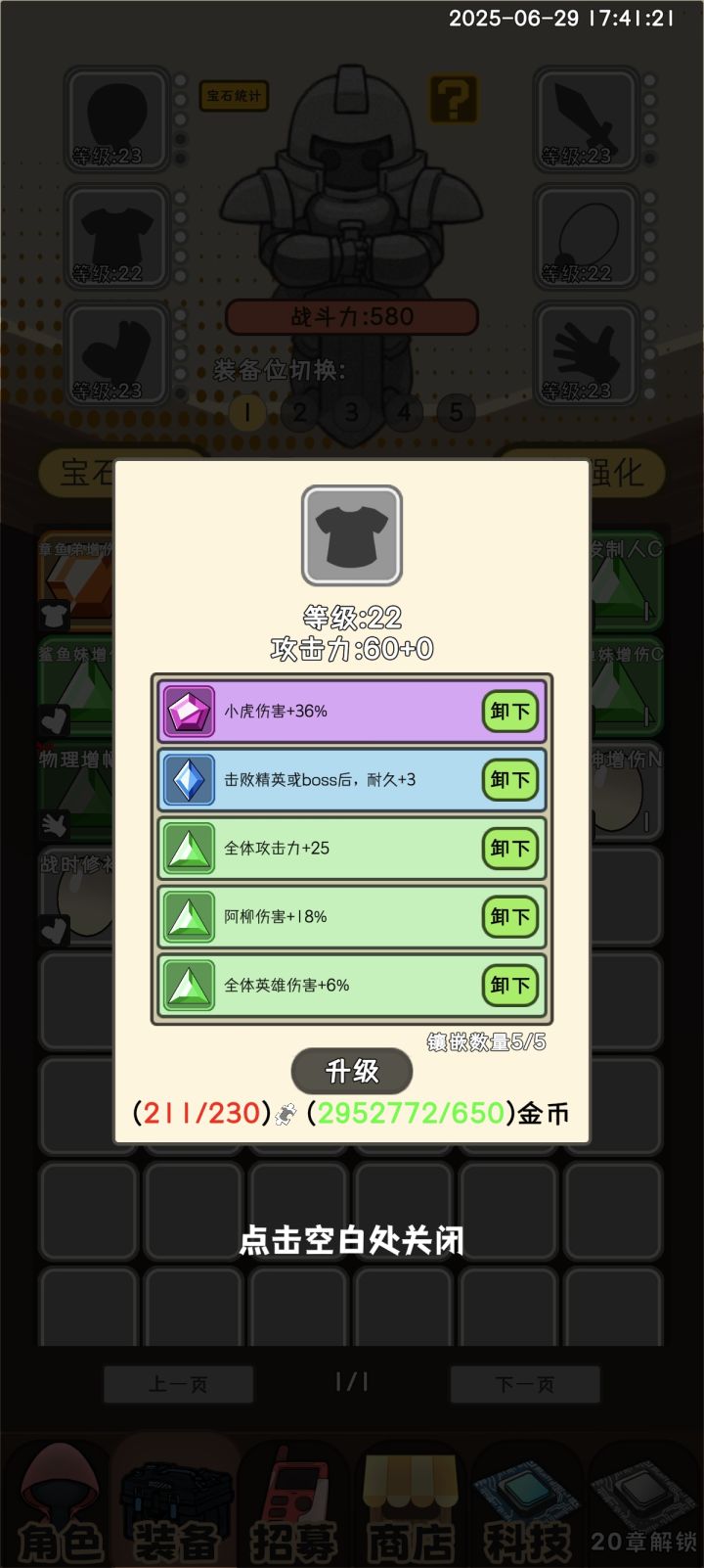 装备是城主(雕像)装备,可以为所有角色提供属性增益,总六个不同槽位,有品级设定,可合成晋级,支持一键强化。也有镶嵌功能,可镶嵌不同品级宝石,有一定组合搭配空间。