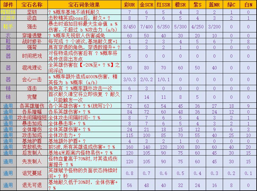 萌宠守卫战—宝石明细