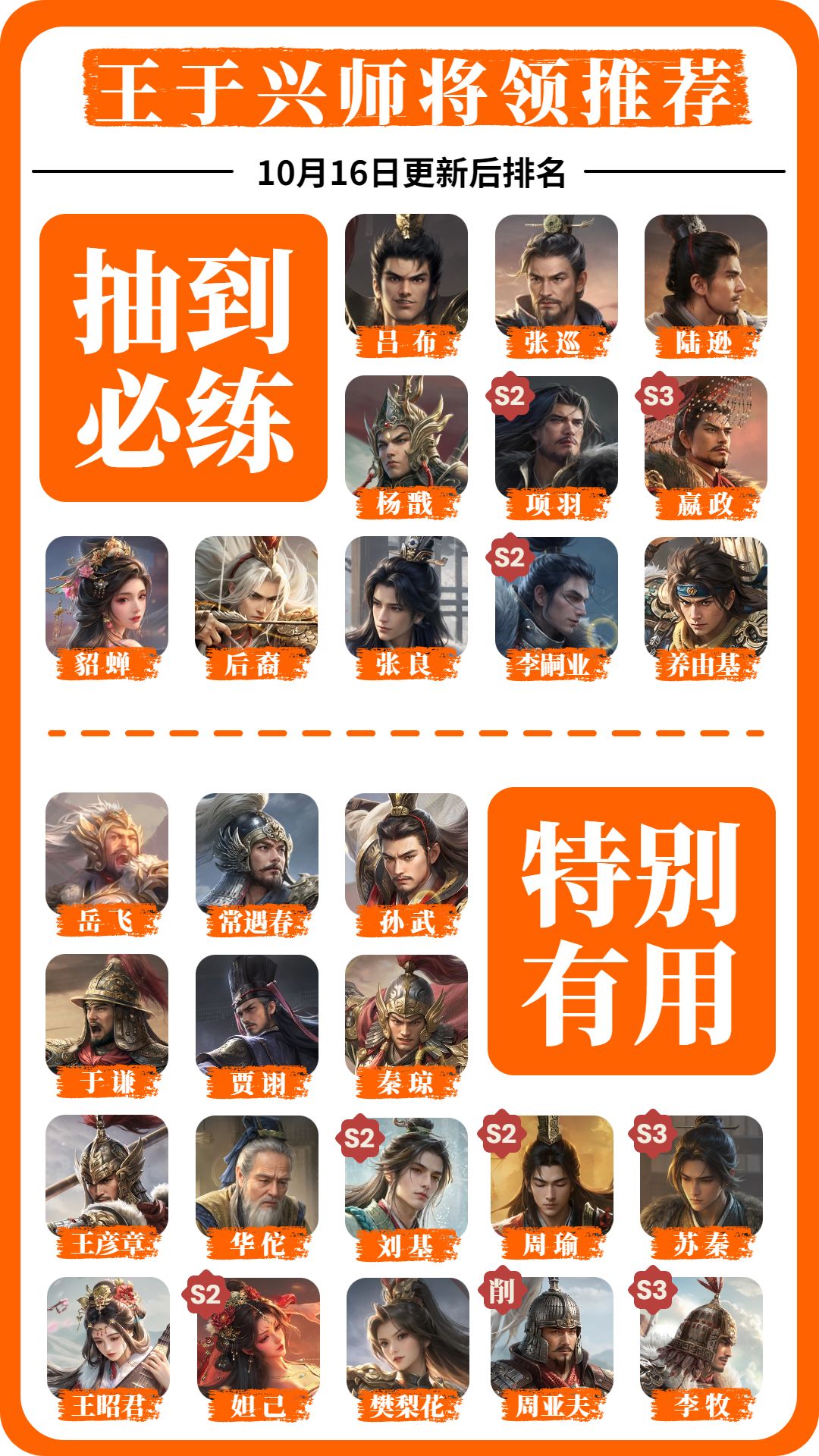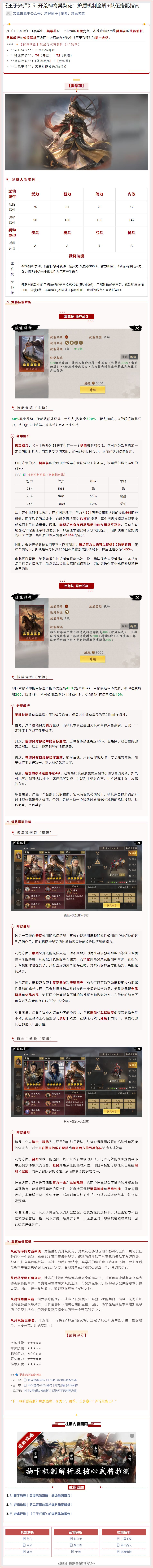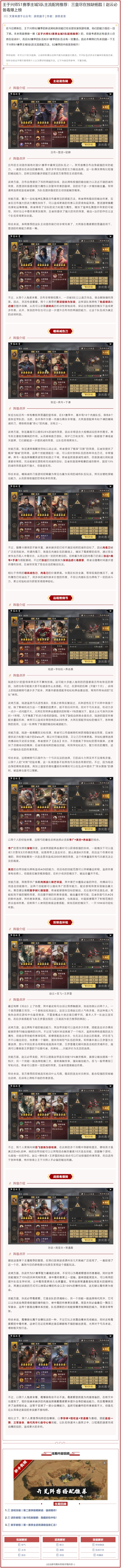 在今日更新后,王于兴师S2赛季的新武将和新技能已经全部实装到游戏里,他们的能力现在一目了然。本来我是想做一期《王于兴师S2赛季主城5队配将推荐》的,但是考虑到还有很多人仍然在征战S1,而且S2赛季的队伍和S1赛季的队伍会有一定重合。因此本期我们先来回顾一下王于兴师S1赛季主城5队的主流搭配方法,S2赛季的内容放到明天! #王于兴师 #王于兴师攻略
