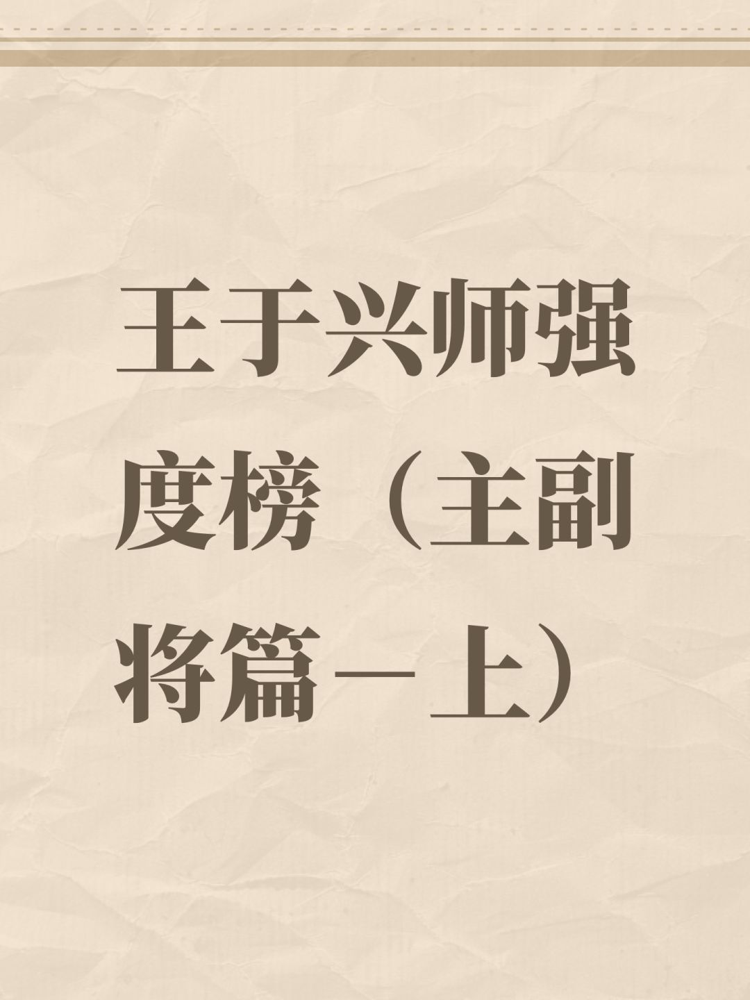 前言: 上一期我们分析了王于兴师S1赛季中各个将领的武力、智力、魄力、政治及四维的排名,具体链接:https://www.taptap.cn/moment/697076232688238728 评论区有小伙伴提出想看一看剔除不太重要的“政治”属性之后的“三维排名”,所以我们这一期一起来一探究竟吧! 一、武·智·魄三维排行(前30) 1. 三维初始 2. 三维成长 3. 三维最终值 去掉了在实