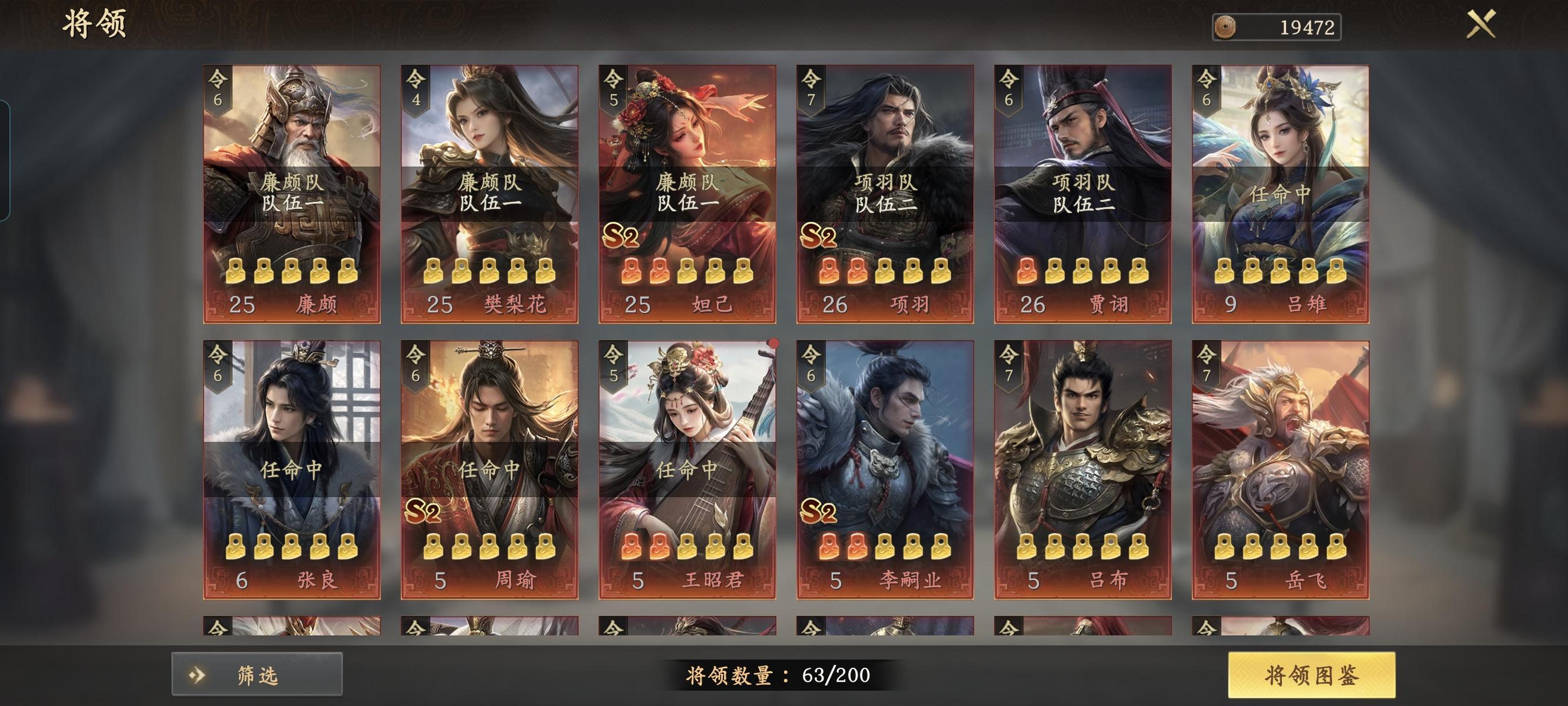 这个游戏s1抽出第一个保底4皇和拿了樊梨花之后,就不要乱花金币和玉了,月卡屯住,一直屯到s2,补一套双倍,全部去抽项羽,抽到一个满红项羽和高红李四也之后,恭喜你你就毕业了,这游戏就叫项羽兴师,满红项羽咔咔乱杀,可以用到游戏倒闭的。