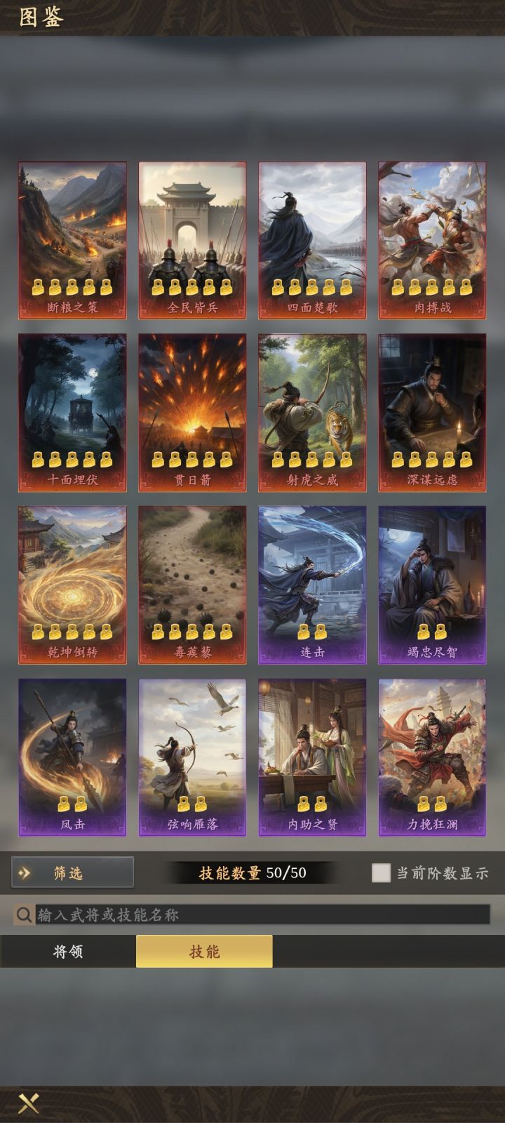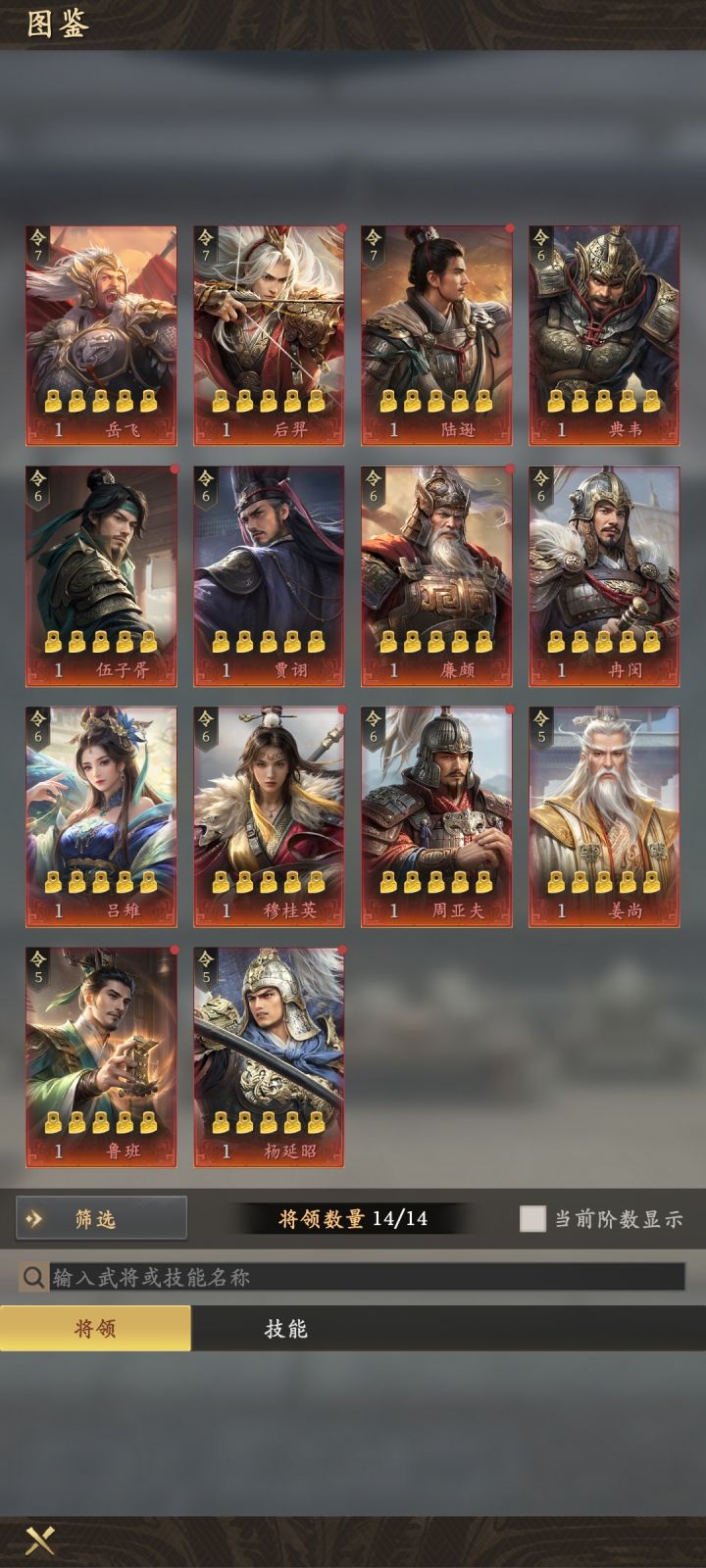 玩了四天感觉不错氪了大小月卡,目前出了这些,求配个将战法还有射虎之威和勇冠三军