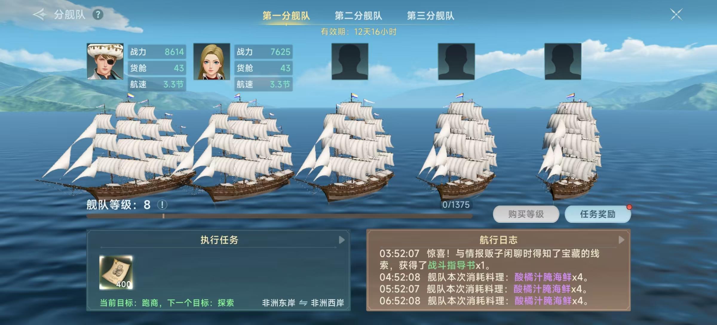各位船长好!我是猫猫!红海版本已经更新一阵子了,大家是不是已经玩明白那个“可以自己打工”的分舰队系统了呢?今天猫猫就带大家好好盘一盘这个堪称 “船长的影分身” 的系统——懒人必备,挂机真香!一分舰队介绍 简单来说,分舰队就是帮你自动跑商或者自动开藏宝图的贴心小助手!(1)跑商:自动赚海币 和我们选的星书以及区域有关。比如选四星书,区域选“欧洲北部→东地中海”,分舰队就会自动跑这条线