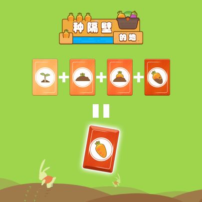 地里可以种植不同的作物,一定数量的同类型作物合成后将升级为下一阶段作物,当作物完全成熟后,可以收割作物释放空地。