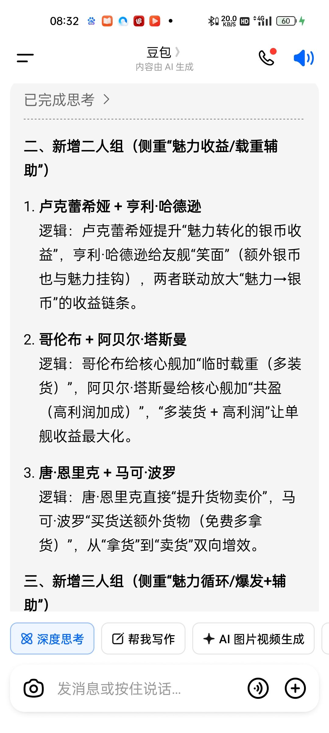 银币银币还是银币!目前版本毕业装备是金装,但是强化金额比较高昂(毕竟银币是白嫖的),后续开放的养成系统也是比较吃银币的(装备核心系统),经内测体验也是大量消耗银币来提升战力,对于肝帝和小氪白嫖玩家来说是比较不偏不倚的提升方式,算是友好吧! 贸易阵容推荐卢克蕾西亚和安托尼亚,放在同一艘船!!!这个重要,按照船只总魅力来计算银币收益。预算和资源有限的玩家就先把这俩拉到6星,其他船只能放橙色尽量放橙色,