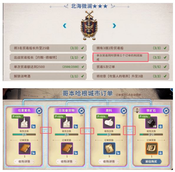 Q1:航速和魅力是什么意思A1:航速是增加船只在海面上移动的速度;魅力是增加银币收益Q2:单次贸易同时获得三个订单利润加成的声望任务怎么做A2:这个任务的意思是,你需要在订单界面,把三个订单都刷成关联的再去贸易,您可以留意订单之间,有没有连线,如果是关联的,就会连线。Q3:为什么才玩没几天,新服签到就没了A3:新服签到是开服20天内可以领取,如果是去老区建新号