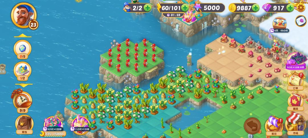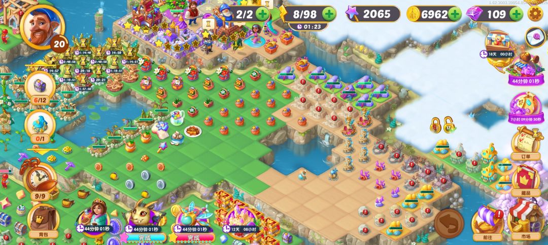 这波活动搞定,发现策划都是算好的,买满350金币的体力再配十多个宝箱就可以合出潜艇活动两个最大的,限时动物岛别乱挖,看好路线,6级动物后面开的图只往能开下个图所需的东西方向挖,开图的那几个关键的要3合一速度开图,2只6级动物出来前要点飞星,6级动物出后就慢慢开体力飞星根本不需要点飞星,靠每天领30体力和恢复的体力就可以完成。今天把蜜蜂最大的完成了,需要24小时,发现原来的小的全变魔法棒了。
