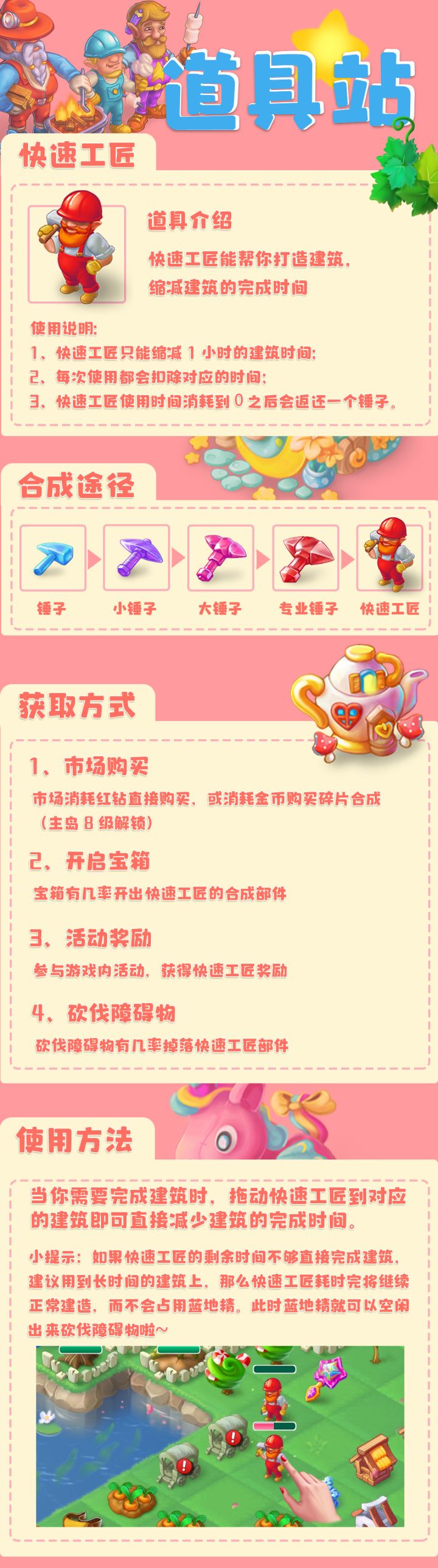 等待时间太长?合成材料不够?别担心,神奇道具会出手!红色工匠最擅长紧急施工,魔法水晶更具有万用魔法,有了它们,经营与合成变得so easy~合成路径、获取渠道、使用方法…快来全方位了解神奇道具吧!#合并童话国 #休闲游戏 #合成 #小游戏 #模拟经营