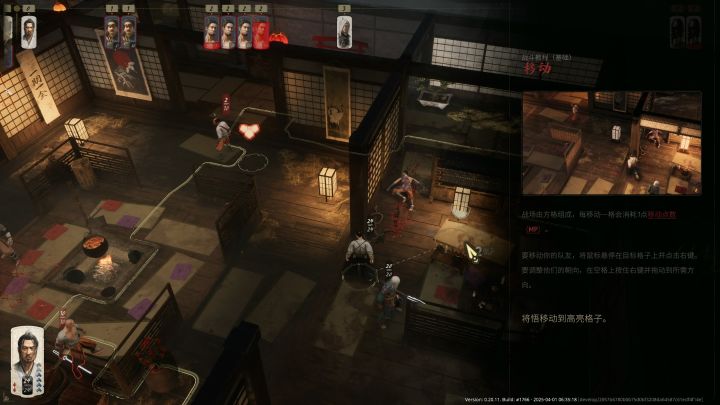 游戏的玩法就是纯粹的SLG,根据角色的行动高低,与敌对的角色在时间轴上会有先后顺序的排序。会有特色的技能,除了会造成角色伤害,还会附加一些特殊效果,比如延迟的攻击,就会将目标的行动力打的往后倒退,行动的机会进一步的被限制,非常容易被屈死。同时,场景也会有一些拐角、墙壁、桌子等可以作为掩体,面对远程的攻击可以抵消一些伤害,在追击以远程攻击手段为主的敌人,中途可以选择这些地点协助减少一些伤害。当然有些场景也可以是进行破坏的,一些可以提供一定防御的屏风、桌椅板凳,在受到一次攻击后就会碎裂,同时也可以增加一些视野和为远程提供攻击的范围。