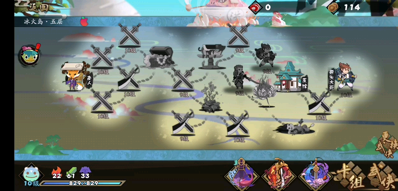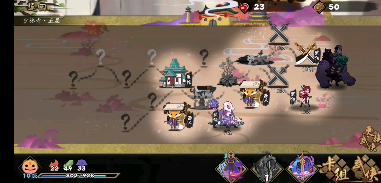 难得打出来一次超强的游侠,攻击叠上60(可以考虑把凤凰琴换成落日弓能上70),兰花指复制万剑利剑直接带走。一张罗汉刀防御,逍遥刀回血。除了冰火岛,华山用万剑冰流也很强,但大漠不好进。