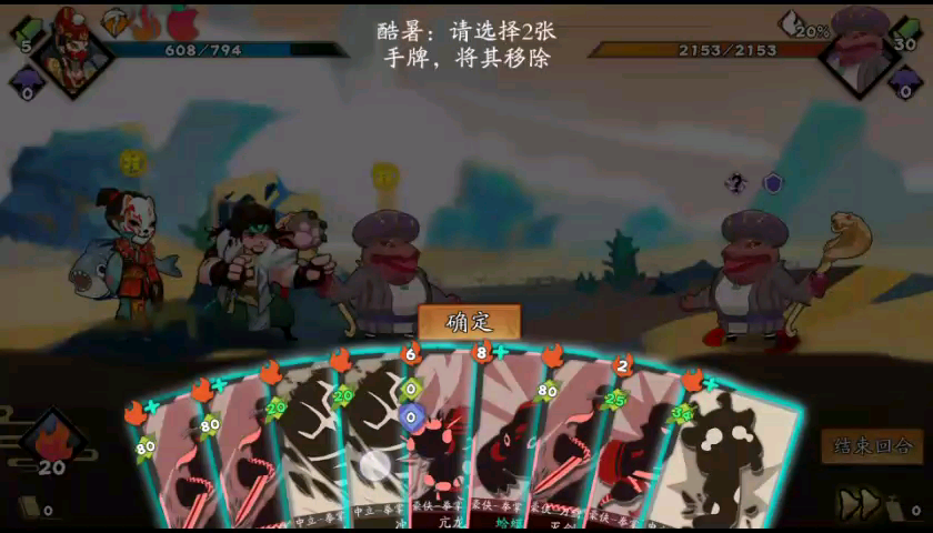 卡组除了武侠自带卡片只留2张冲拳(删完也行),然后两张升级都锁喉,一直丢锁喉(别把自己丢司就行😁),后面冷血蛤蟆收尾吸满收工。 顺便吐槽下boss周芷若,自残豪侠连着給我五回合外功免伤,还能不能玩了