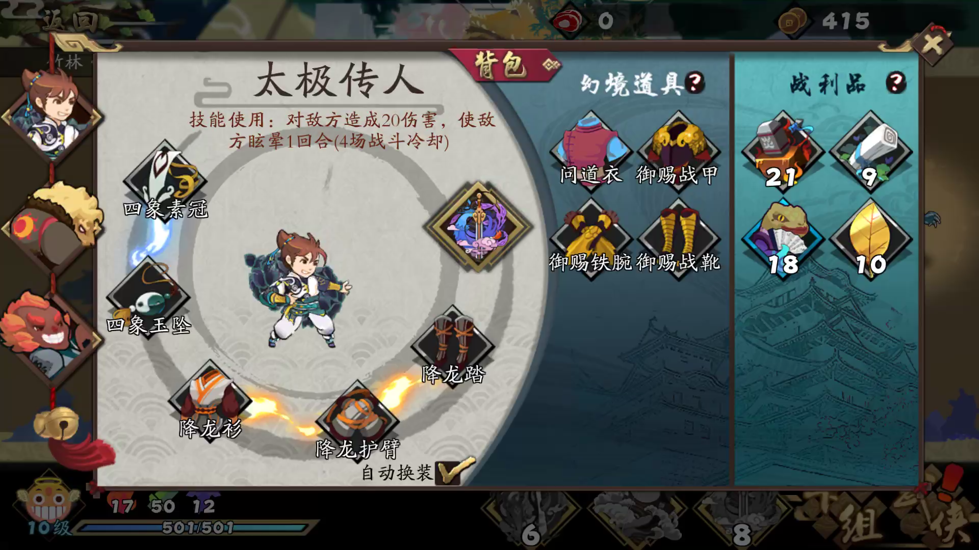 打竹林补个逍遥套,手上一堆手牌。摸到太极基本一回合结束了。