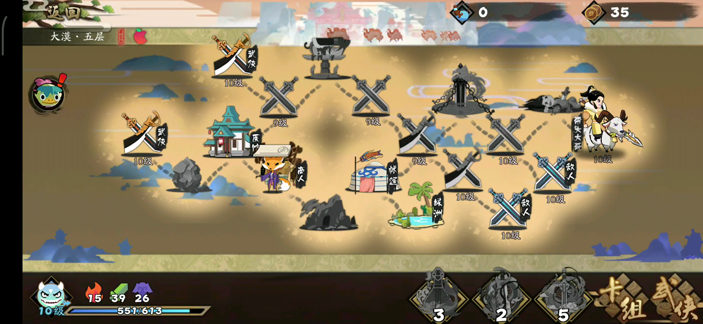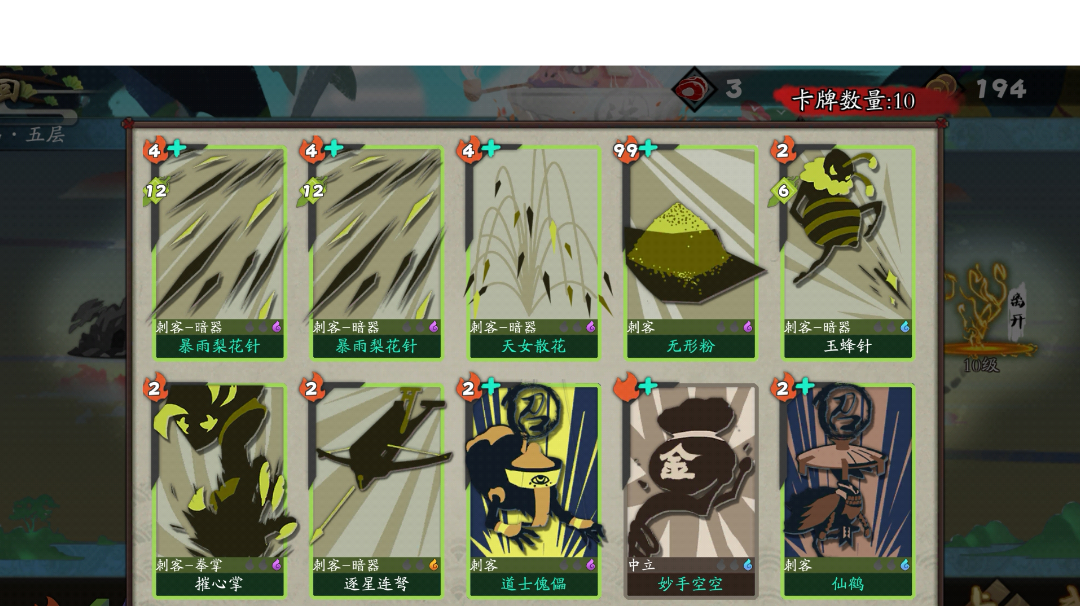 主要人物:剑圣 图:竹林 神兵:落日圣火金陵折扇 流程:进门祭坛选升级卡牌,选择万剑升级,然后选择套装逍遥。 之后若有遇到固有卡牌的人物,选择万剑固有,随后,一路飞。遇到卡牌就拿。无脑刷刷刷。