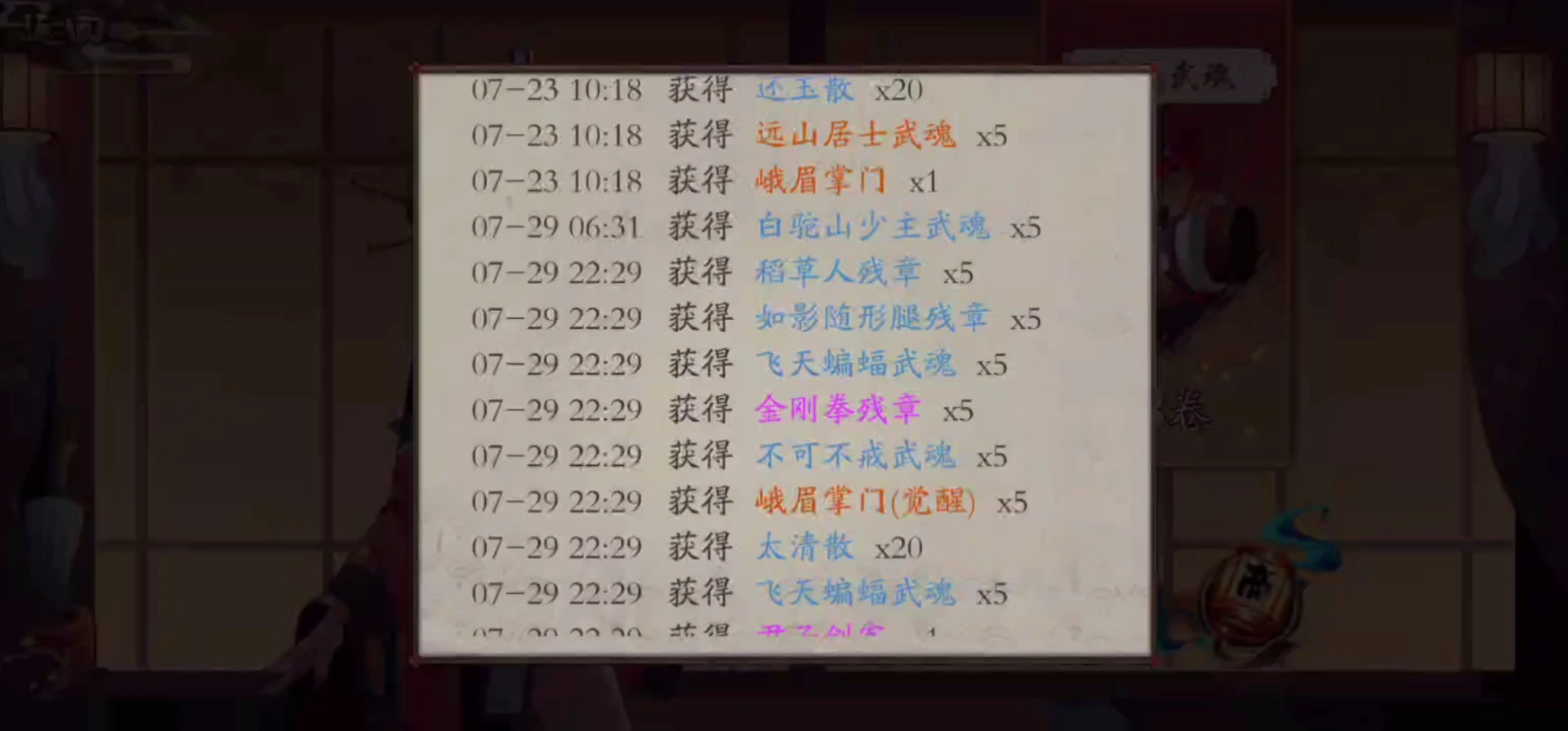 32发抽到20个黑周碎片外加一个古墓掌门