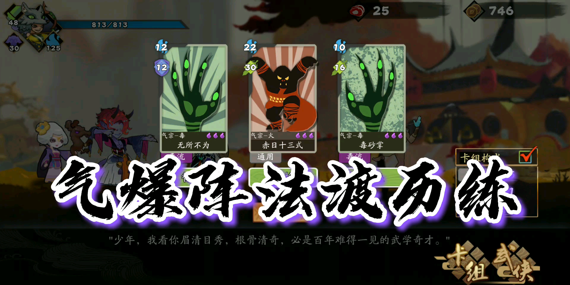 如题,楼内有视频为证,具体需要的卡为三生绕指柔(永动根本,回怒),降龙剑法(弯弓自带,输出),峨眉纯阳功(小东邪自带,过牌+增伤),兰花指(复制牌,别问怎么得,反正我是经常碰到),唯我独醒(核心,加循环),以上都要升级。