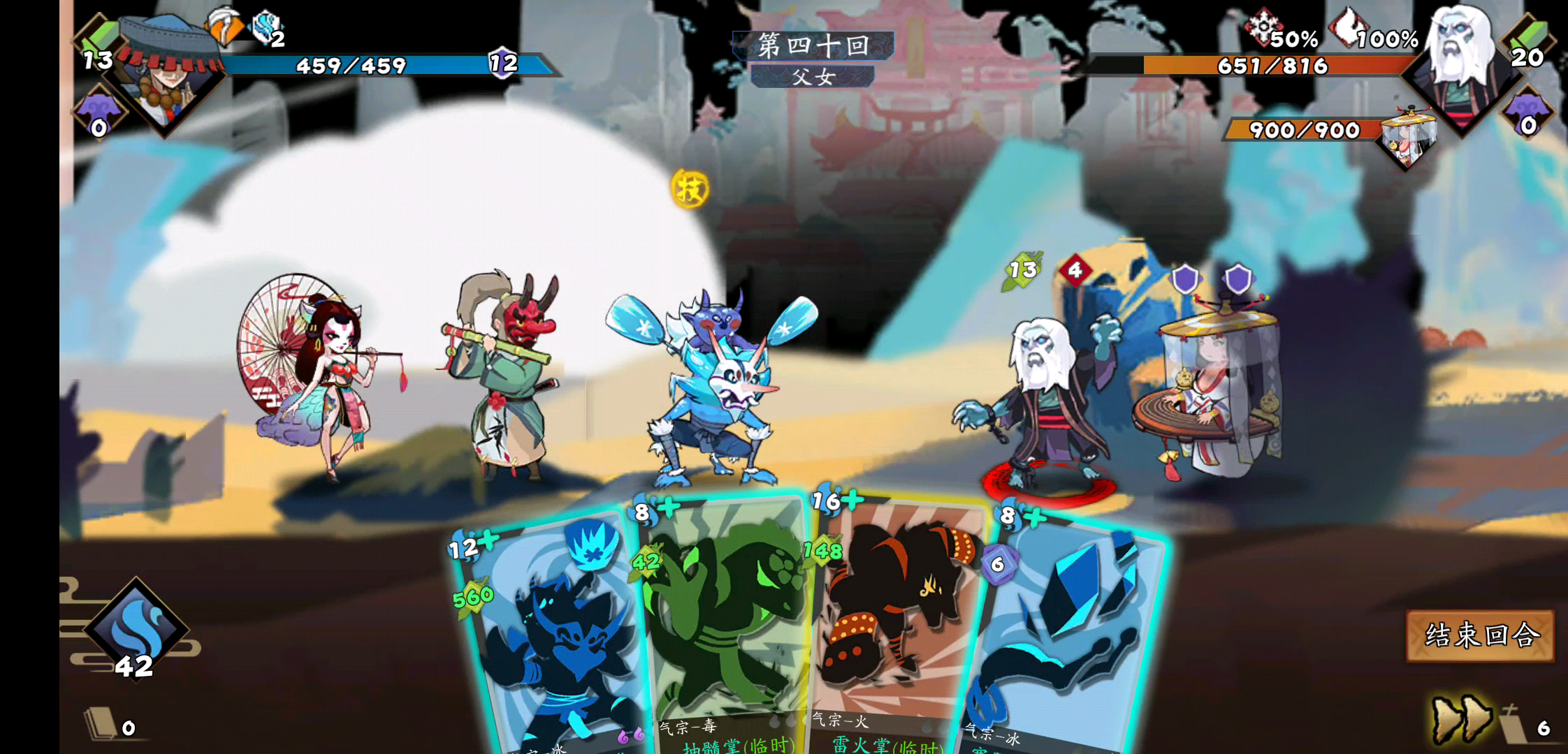 婉儿,童姥,铜尸说实话三个人自带的牌都没啥吊用,垃圾的鸭批,凑个紫金,饮血,忠武,夺魂(因为打的是华山,用来把起手的冰牌换掉),然后剩下俩随便啦,尽量把手里的牌弄到10以内,弄到并升级天女散花,暴雨梨花针,龙须针(核心),防御来个金钟罩就够