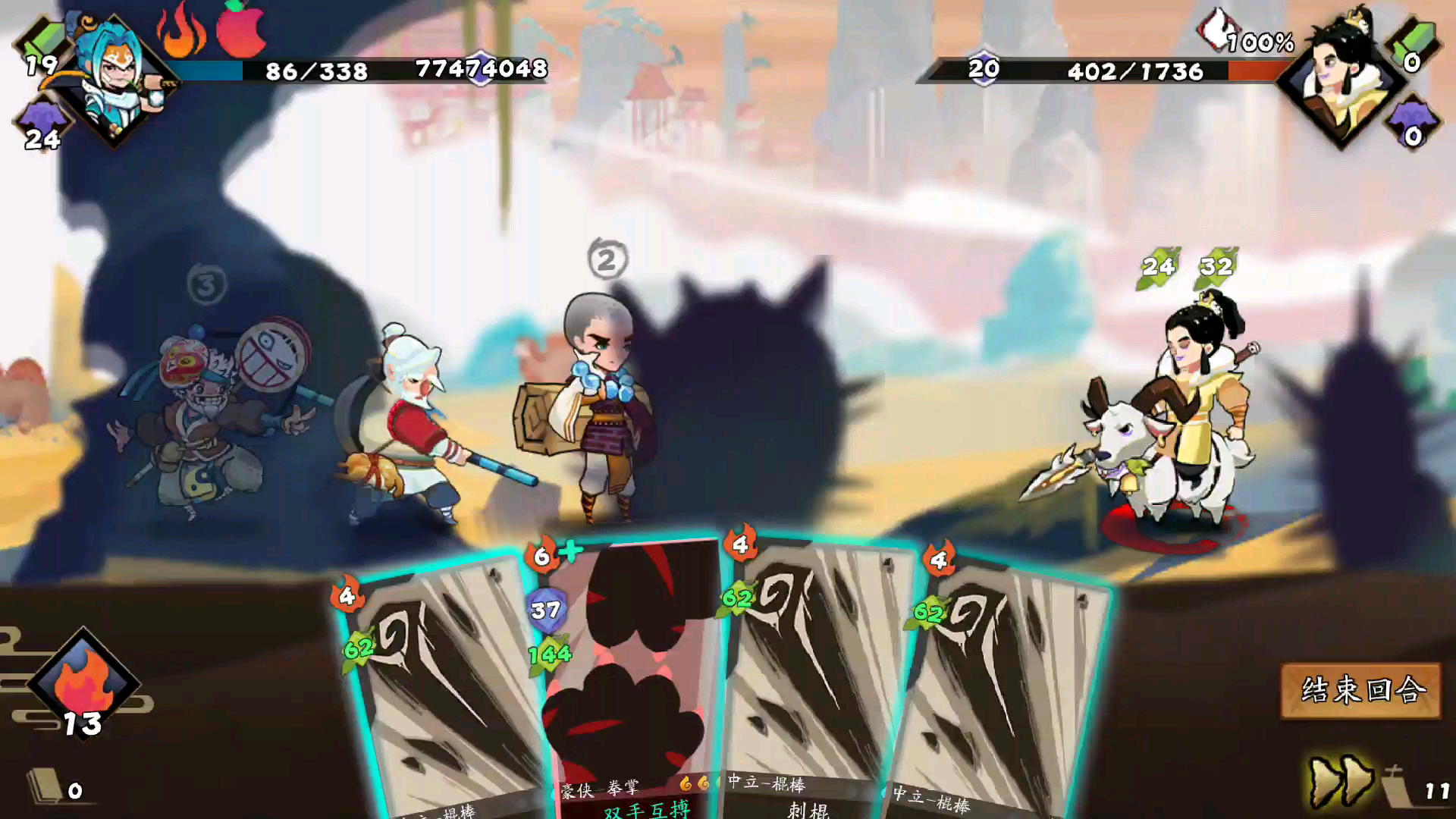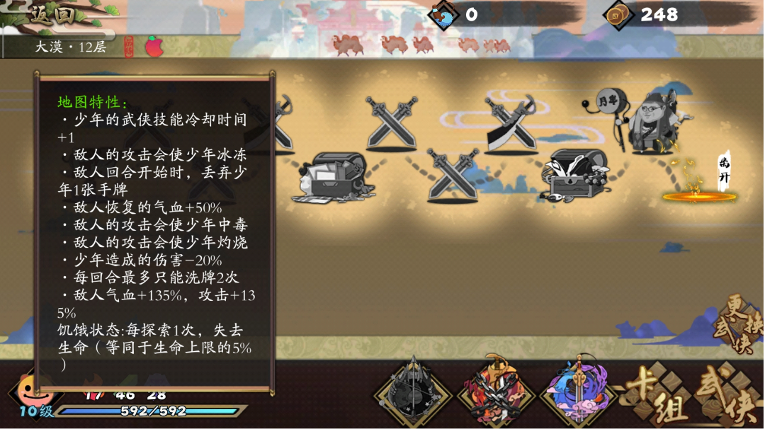 困难游侠历练 一个明王,一个周芷若,太恶心了。 最后一层一个回合只准我洗牌两次 。 但是,还是打过了!淦!