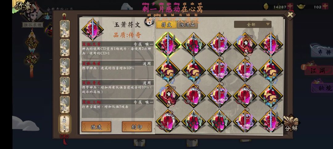 萌新一枚,分享快乐! 玉树公子武学:毒蛇拳法(气宗-毒)(抽一张毒牌免怒气打出)+灵蛇引(气宗-毒)(打出获得疯狂x1,护盾x9) 可以看到打完之后出现了573-15=558护盾558/9=62想到于打出了62次灵蛇引,但是并没有那么多的疯狂,这里我不太懂 毒蛇拳法越多打的伤害越高,但是遇到污染牌库的一回合打不掉就很难受,我只是分享一下我的快乐,不喜忽喷[表情_微笑]#游戏讨论#游戏攻略