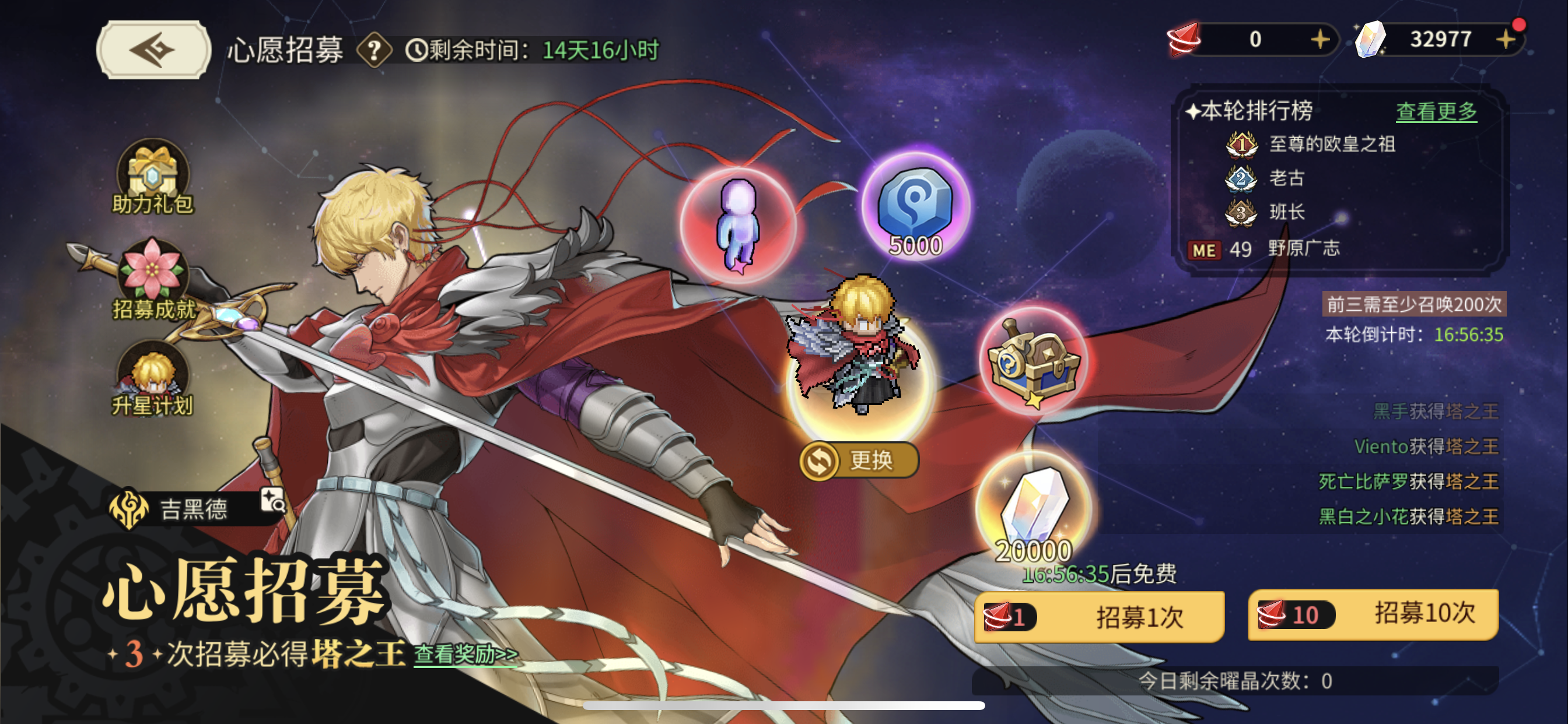 更新塔王:幻影 贯穿 暴击 闪避 神佑 追击/振奋(低星追击,高星高觉振奋)