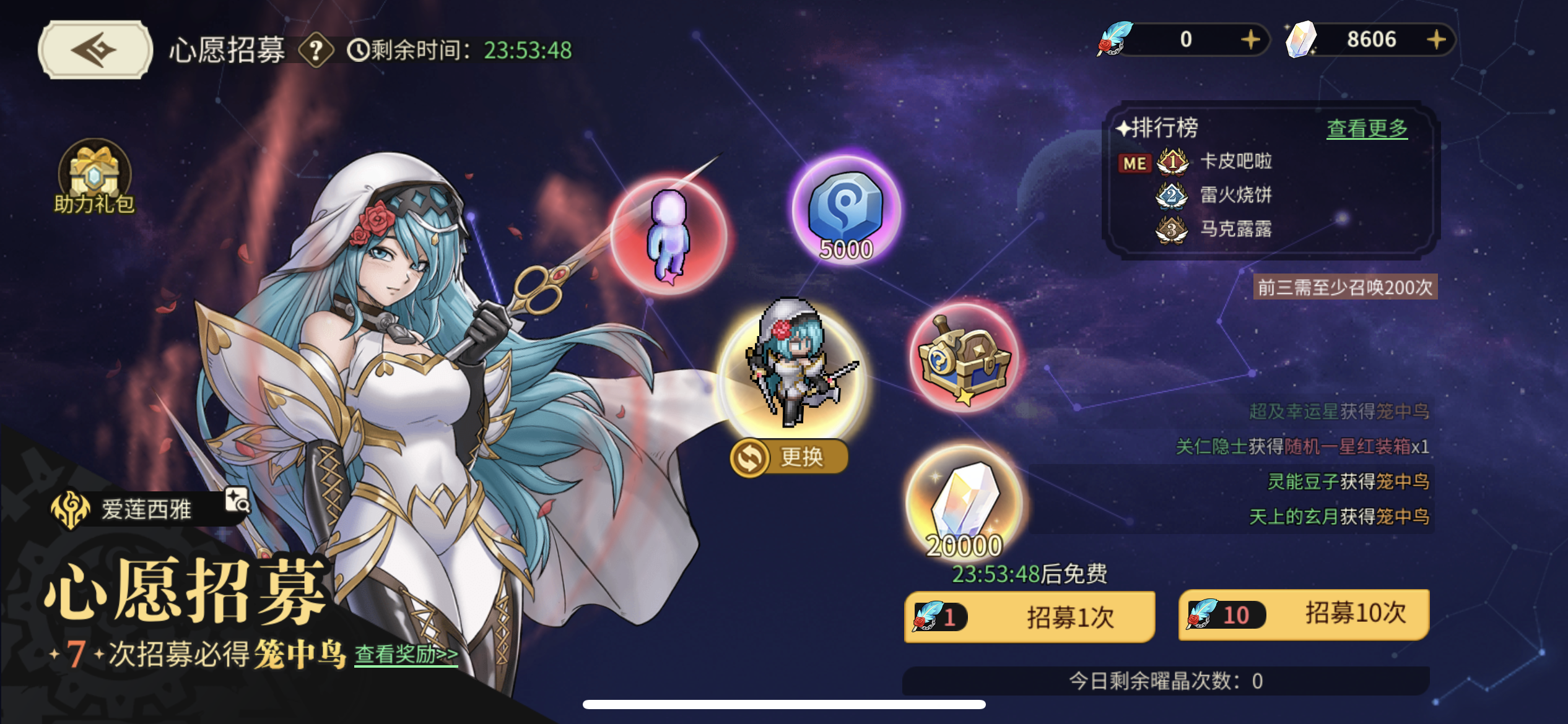 开局攻略:一个中心“前期三系过渡,后期光暗称王”,前期随便(低星百级前可免费重置)抽到哪个好上哪个,尽量阵容属性加成最高(前期一般用4+2的三系英雄最好)天命千抽选择:优先“布都神子”白露宫绫乃,次选“蚀刻魔女”玛姬,没有就选推荐神话英雄ps:不出光暗英雄的情况下可参考一般情况:神话>传说>史诗高星>低星三系推荐:蓝色:推荐“蚀刻魔女”玛姬(群伤控制);“黑珍珠”卡特琳娜(前排,够硬