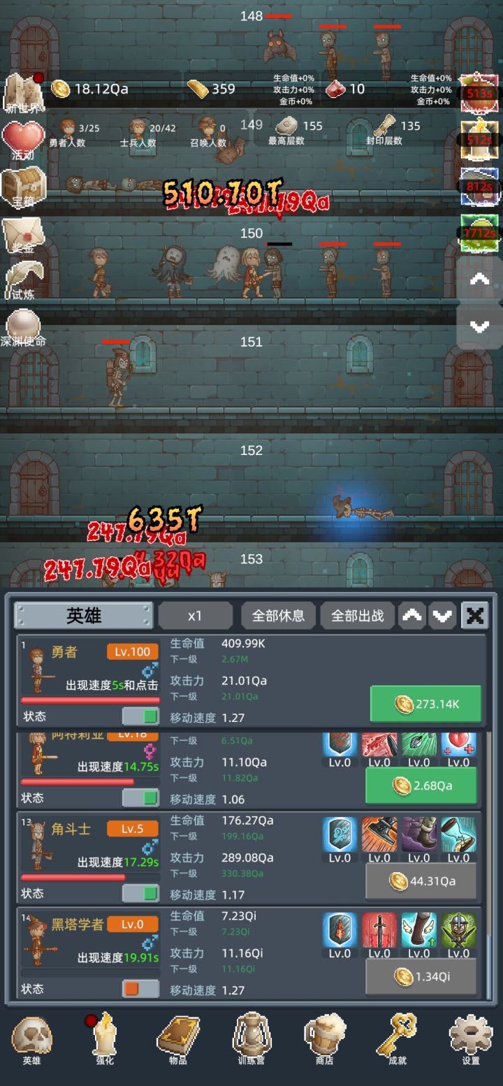 这游戏真不错,本来以为放置类就是随便点点就完事了,结果玩进去发现还挺上瘾,和之前有一款叫做勇者之塔的游戏很像。