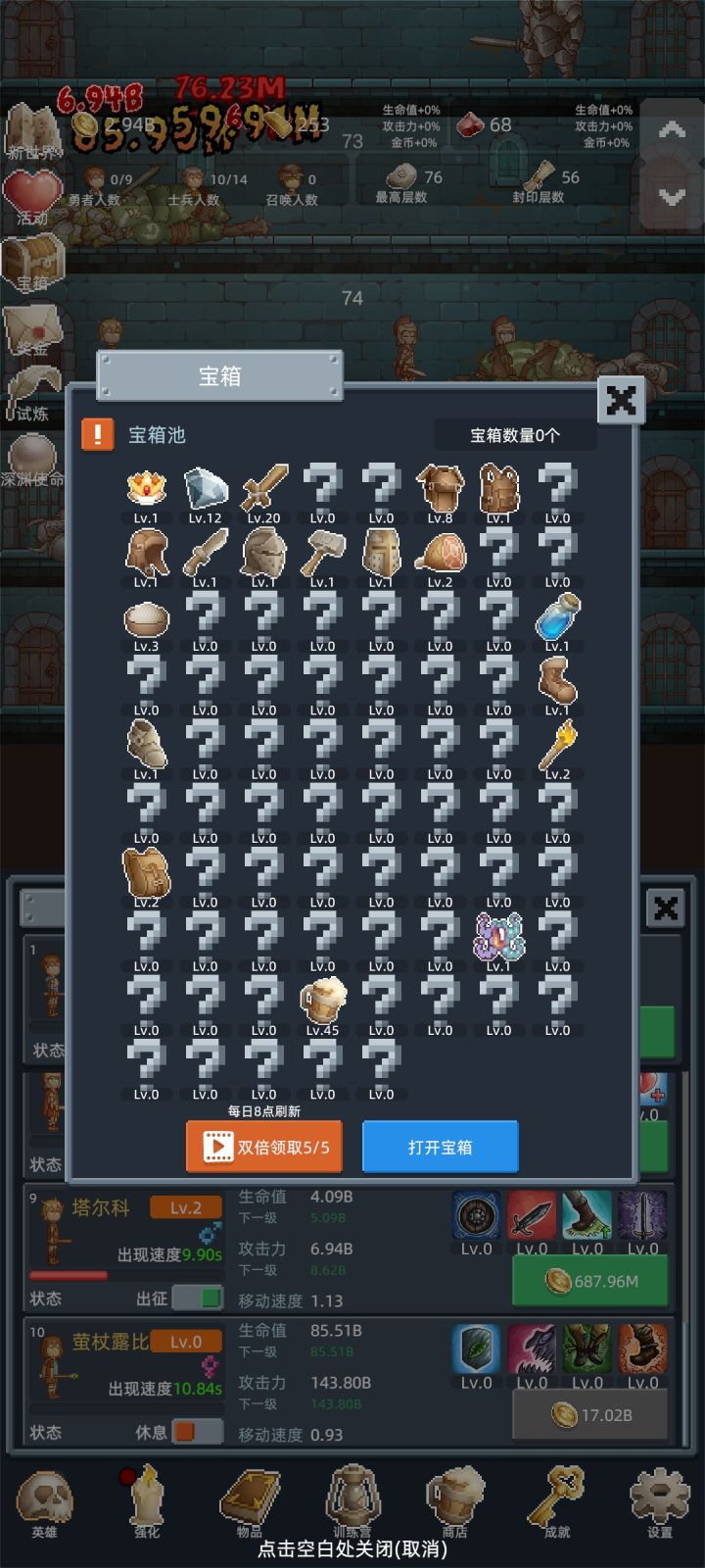 开局进群把兑换码用完, 商店:商店的东西只能买5次,每次开新世界重置 在商店买【勇者之赐】,升级勇者,点击出兵。 在商店买【点金术】,同样只能买5次,建议在第10个士兵【营仗露比】16B,【点金术】给10B-16B的时候买一次。 【点金术】500B的时候,买两次升11士兵【戴维琼斯】。 【点金术】5T的时候,买两次,然后直接开新世界。 士兵每个只用升到4级,就够用了。 来自TapTa