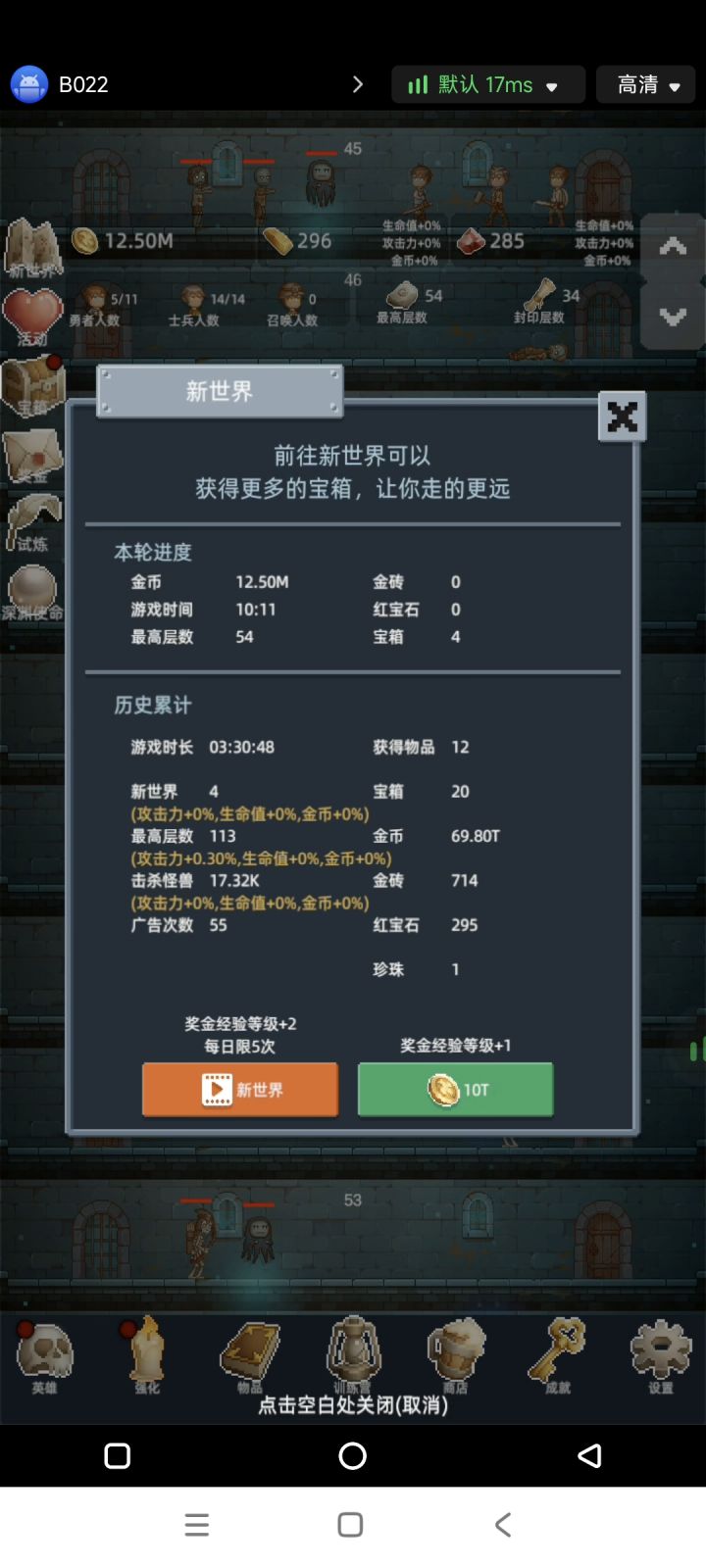 转生次数越多越强,整体体验挺不错。像素画风但形象鲜明,玩法挺肝,自动战斗+挂机养成,上班摸鱼、通勤打发时间都很合适。 游戏没有强制广告,也不逼氪,零氪爽玩。阵容搭配、转生养成有一定策略性,不是无脑点点点,越玩越有成就感。