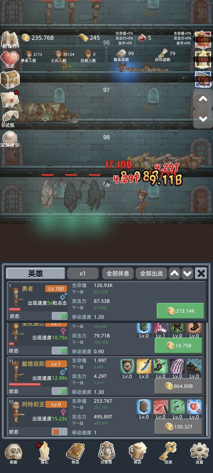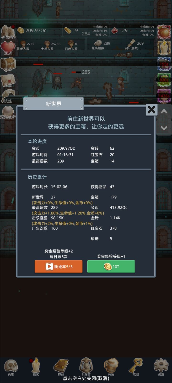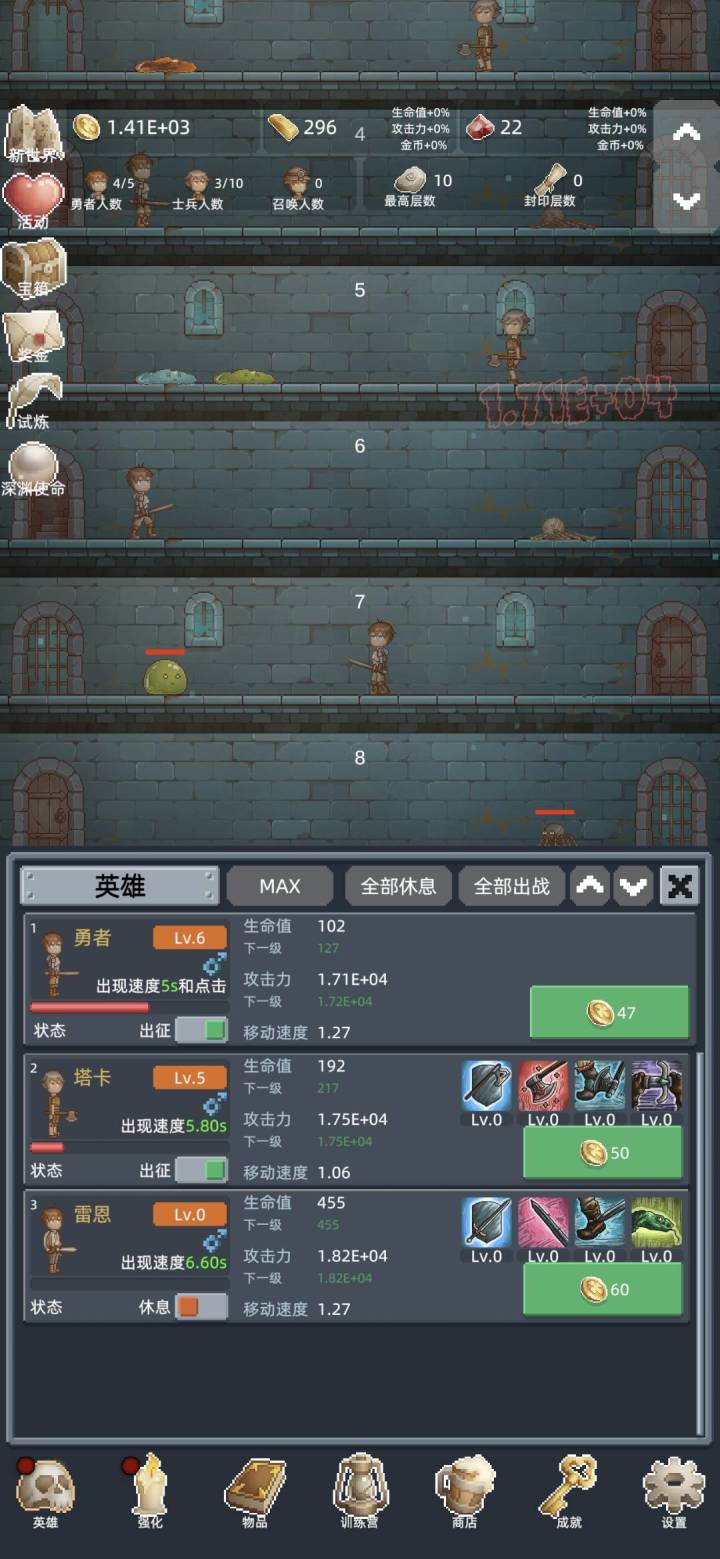 转生次数越多越强,整体体验挺不错。像素画风但形象鲜明,玩法挺肝,自动战斗+挂机养成,上班摸鱼、通勤打发时间都很合适。 游戏没有强制广告,也不逼氪,零氪爽玩。阵容搭配、转生养成有一定策略性,不是无脑点点点,越玩越有成就感。 而且刷点很高,适合收集癖玩家,多次转生也不会感到腻味,休闲解压首选,想要打发时间的话推荐一试。