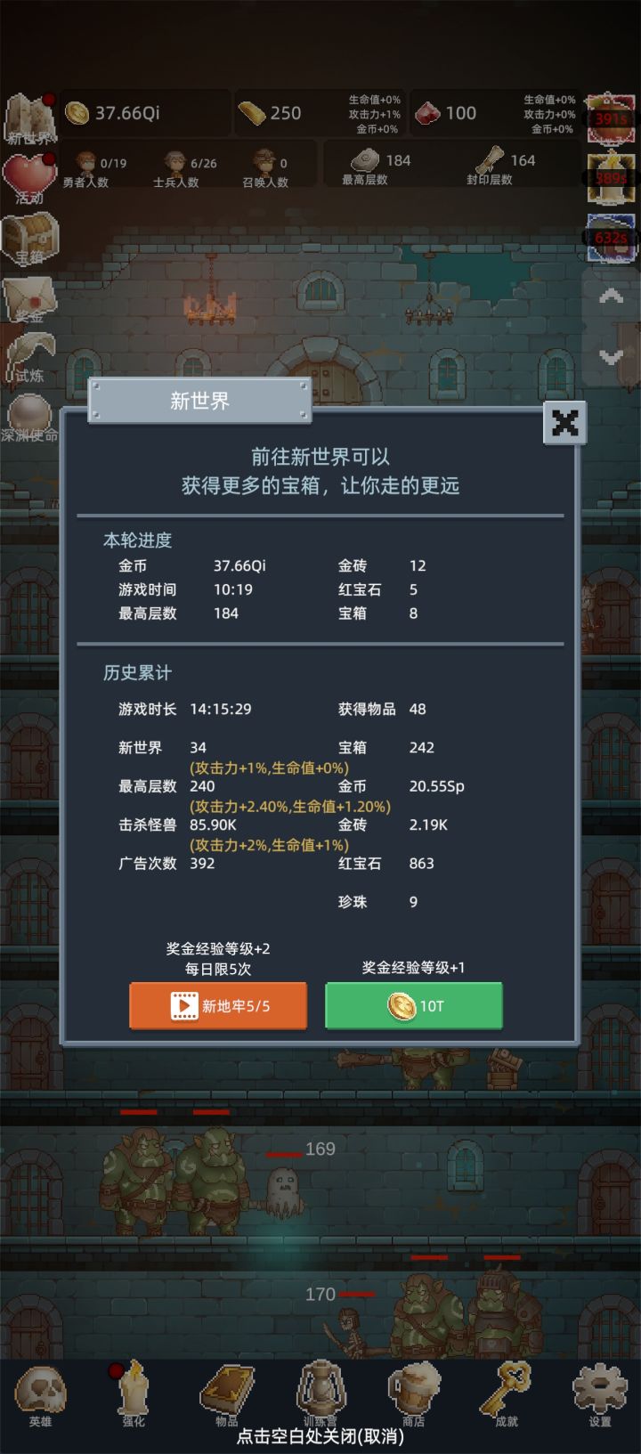 体验了两天。这游戏流畅度及优化都非常舒服。手机怎么玩都没发热。各种设计也比较符合胃口。很久没玩到过这么舒服的无限爬塔类型游戏了。前期玩法感觉都得优先升级攻击力。我的宝石被我乱点浪费了,建议大家优先升级传承的攻击