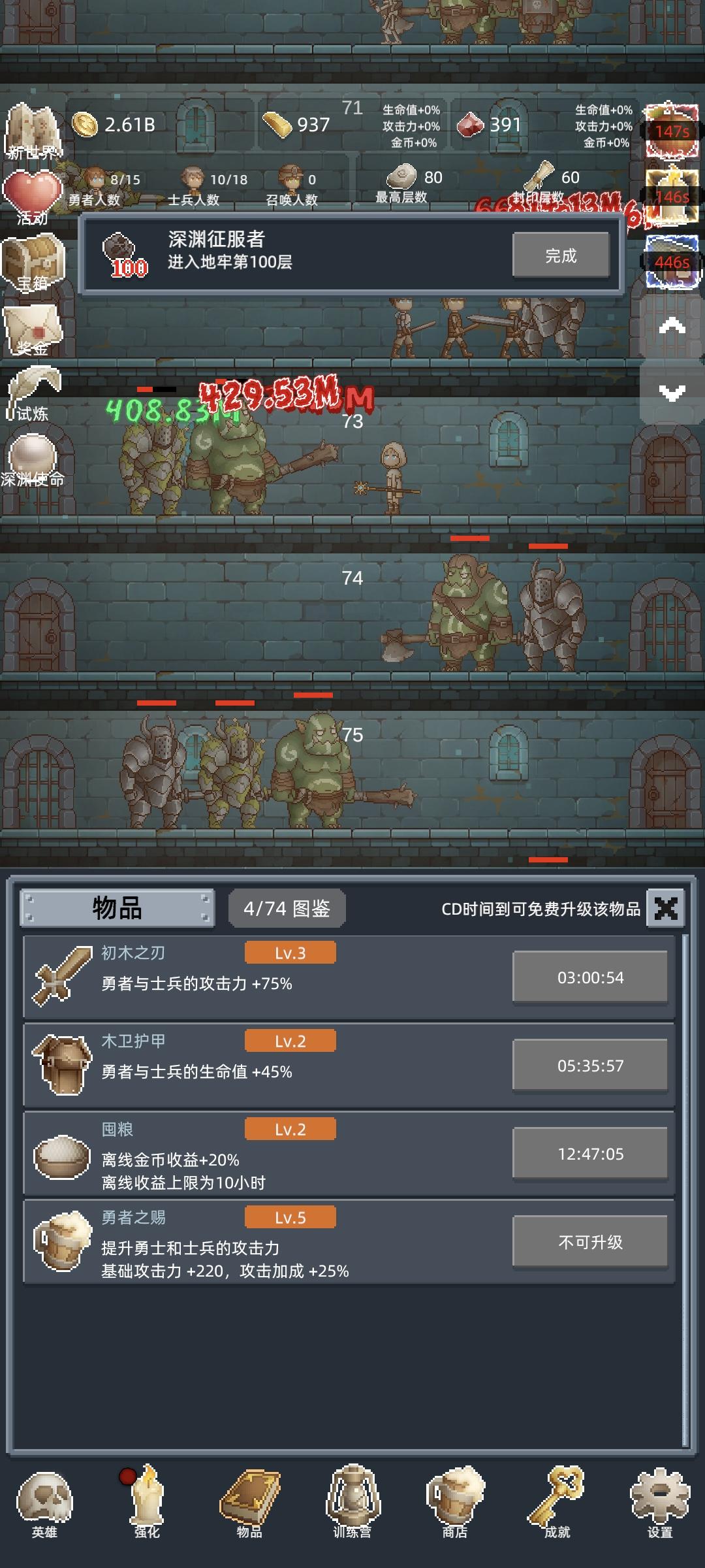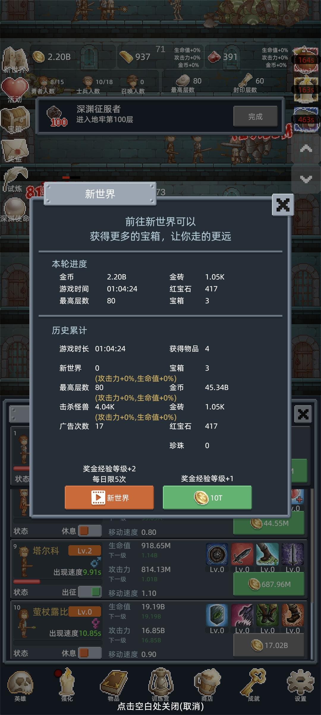 玩了一个小时,这种爬塔游戏还挺有趣的,今天不过第一次转生不睡了