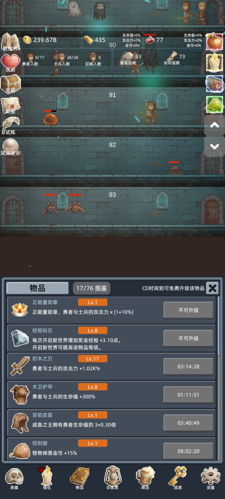 勇者和士兵的人数强化到20人左右就差不多够用了,点高了也塞不满